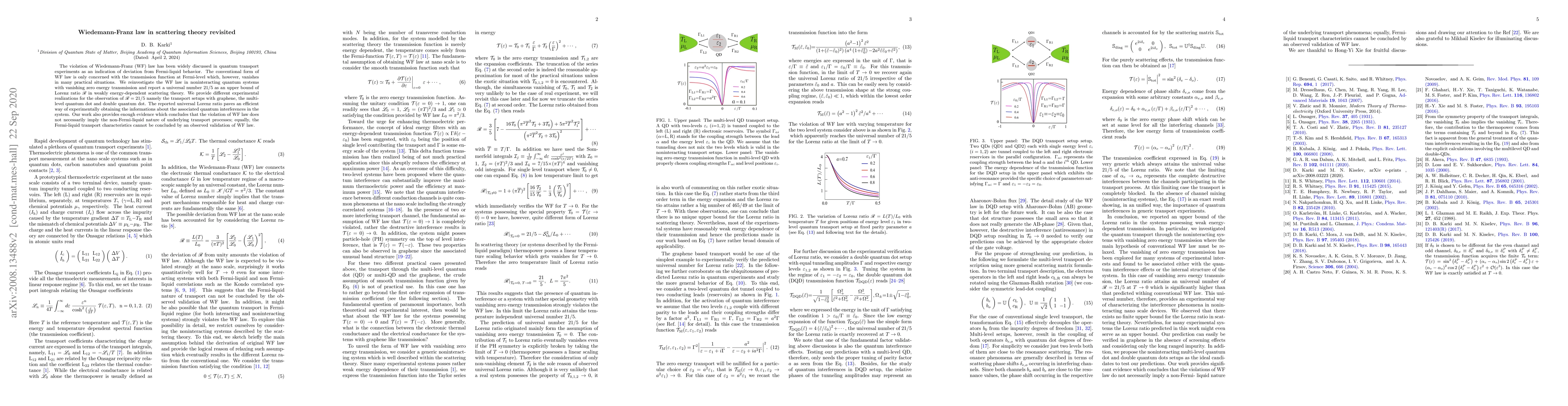 The violation of Wiedemann-Franz (WF) law has been widely discussed in quantum transport experiments as an indication of deviation from Fermi-liquid behavior. The conventional form of WF law is only concerned with the transmission function at Fermi-level which, however, vanishes in many practical situations. We reinvestigate the WF law in noninteracting quantum systems with vanishing zero energy transmission and report a universal number $21/5$ as an upper bound of Lorenz ratio $\mathscr{R}$ in weakly energy-dependent scattering theory. We provide different experimental realizations for the observation of $\mathscr{R}=21/5$ namely the transport setups with graphene, the multi-level quantum dot and double quantum dot. The reported universal Lorenz ratio paves an efficient way of experimentally obtaining the information about the associated quantum interferences in the system. Our work also provides enough evidence which concludes that the violation of WF law does not necessarily imply the non-Fermi-liquid nature of underlying transport processes; equally, the Fermi-liquid transport characteristics cannot be concluded by an observed validation of WF law.