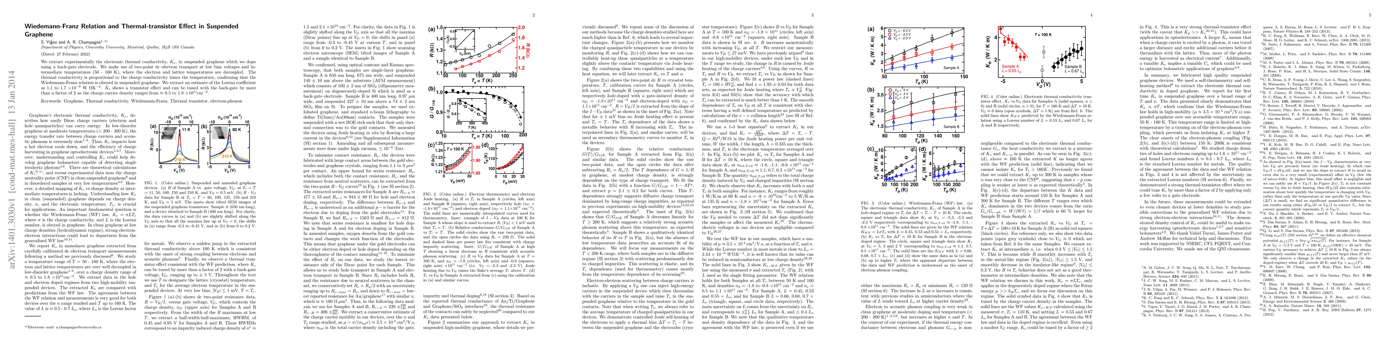 This study experimentally verifies the Wiedemann-Franz relation in suspended graphene by measuring its electronic thermal conductivity, $K_{e}$, which scales with charge conductivity times temperature. The thermal conductivity can be tuned via a back-gate, demonstrating a thermal-transistor effect.