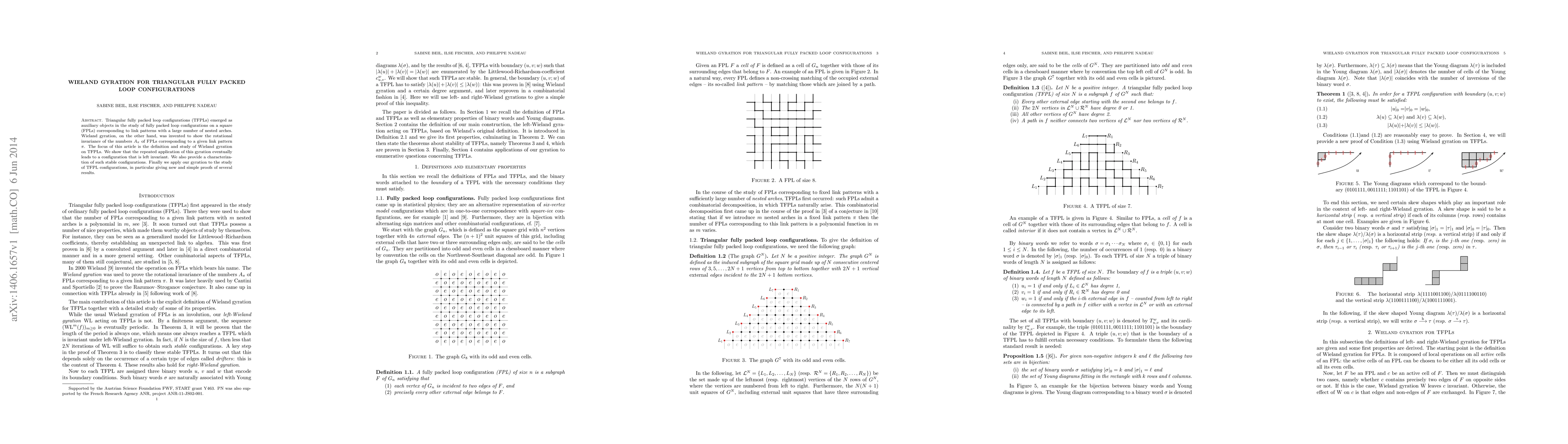 This paper defines and explores Wieland gyration for triangular fully packed loop configurations (TFPLs), demonstrating its eventual invariance and characterizing stable configurations. It also provides new proofs for several results regarding TFPLs.