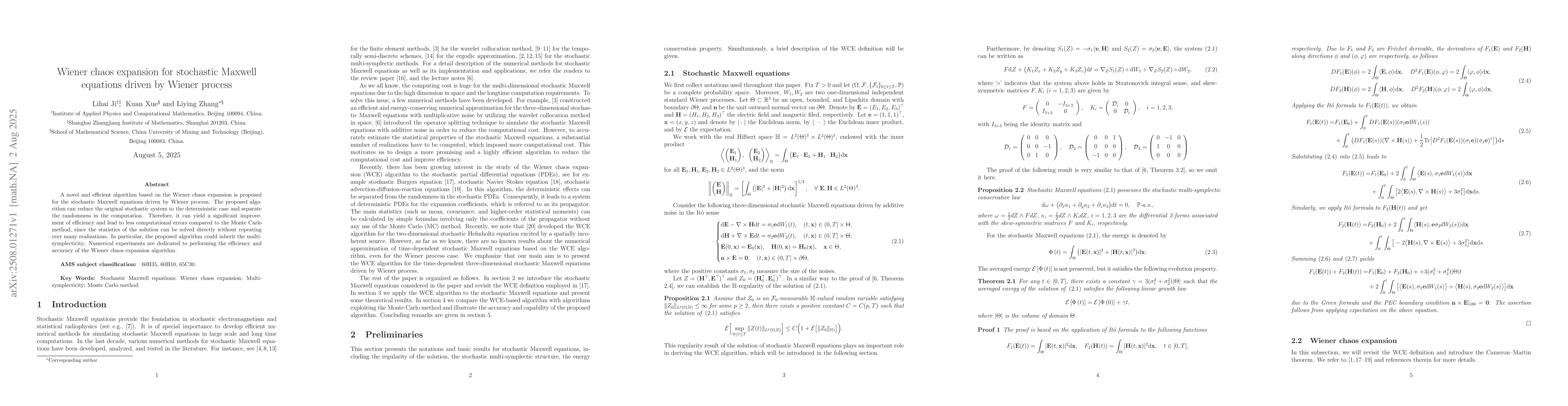A novel and efficient algorithm based on the Wiener chaos expansion is proposed for the stochastic Maxwell equations driven by Wiener process. The proposed algorithm can reduce the original stochastic system to the deterministic case and separate the randomness in the computation. Therefore, it can yield a significant improvement of efficiency and lead to less computational errors compared to the Monte Carlo method, since the statistics of the solution can be solved directly without repeating over many realizations. In particular, the proposed algorithm could inherit the multi-symplecticity. Numerical experiments are dedicated to performing the efficiency and accuracy of the Wiener chaos expansion algorithm.