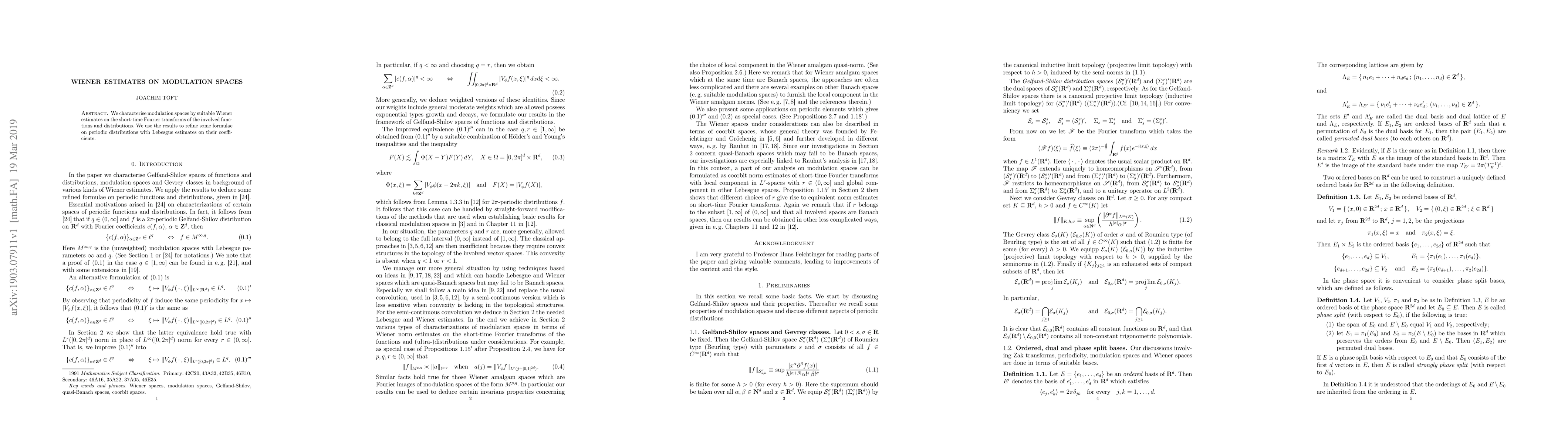 Summary: This paper characterizes modulation spaces through Wiener estimates on short-time Fourier transforms, and utilizes these results to improve formulas for periodic distributions with Lebesgue estimates on their coefficients.