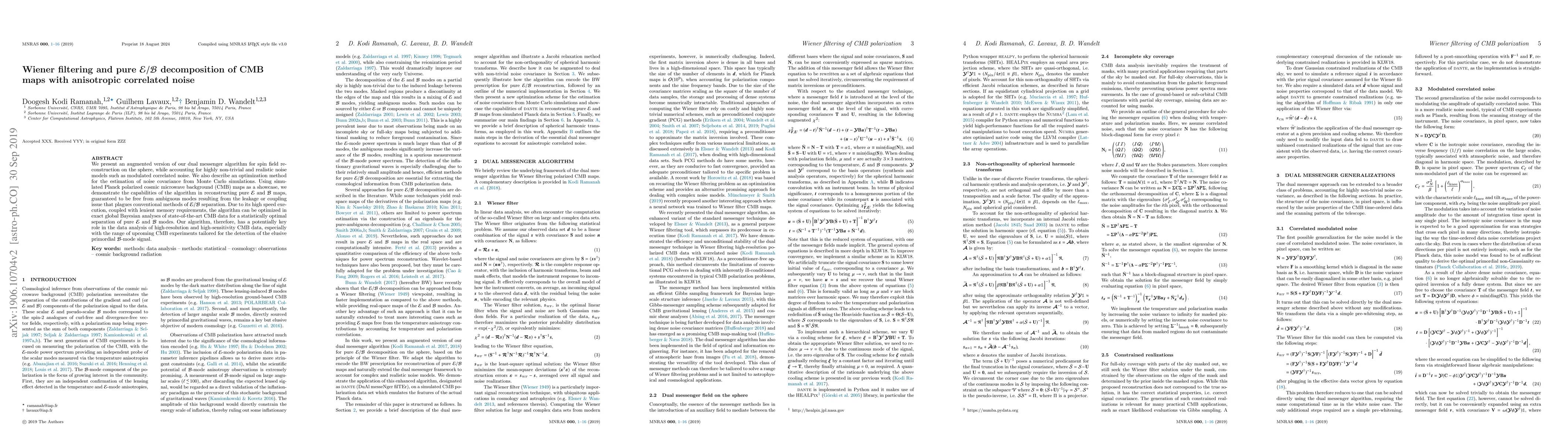 We present an augmented version of our dual messenger algorithm for spin field reconstruction on the sphere, while accounting for highly non-trivial and realistic noise models such as modulated correlated noise. We also describe an optimization method for the estimation of noise covariance from Monte Carlo simulations. Using simulated Planck polarized cosmic microwave background (CMB) maps as a showcase, we demonstrate the capabilities of the algorithm in reconstructing pure E and B maps, guaranteed to be free from ambiguous modes resulting from the leakage or coupling issue that plagues conventional methods of E/B separation. Due to its high speed execution, coupled with lenient memory requirements, the algorithm can be optimized in exact global Bayesian analyses of state-of-the-art CMB data for a statistically optimal separation of pure E and B modes. Our algorithm, therefore, has a potentially key role in the data analysis of high-resolution and high-sensitivity CMB data, especially with the range of upcoming CMB experiments tailored for the detection of the elusive primordial B-mode signal.