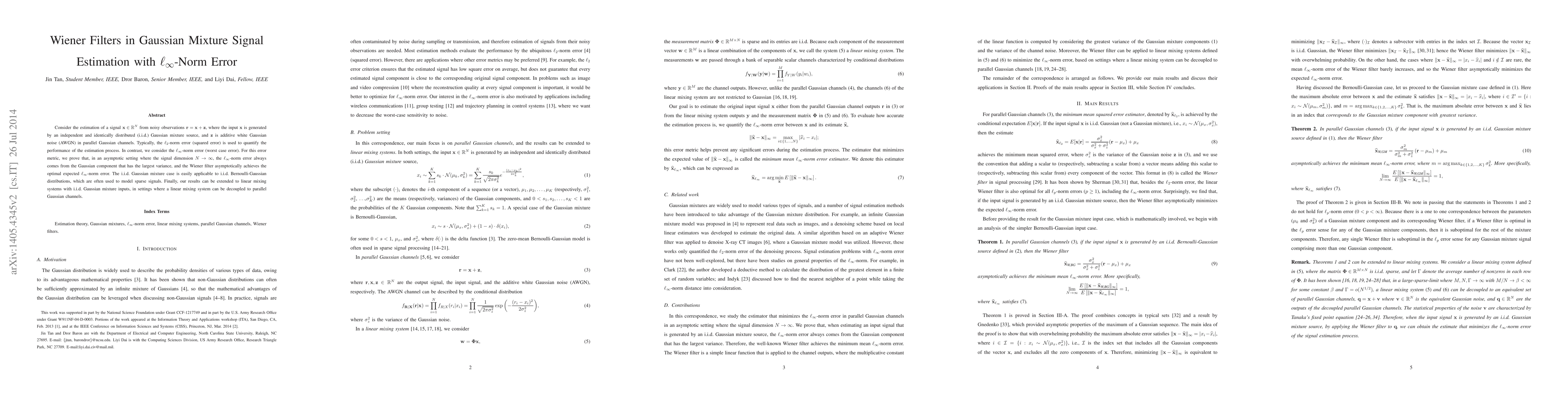 This paper investigates the estimation of signals from noisy observations using Wiener filters, focusing on the $\ell_\infty$-norm error instead of the typical $\ell_2$-norm. It demonstrates that the Wiener filter achieves optimal performance under the $\ell_\infty$-norm in high-dimensional settings, particularly for Gaussian mixture sources.