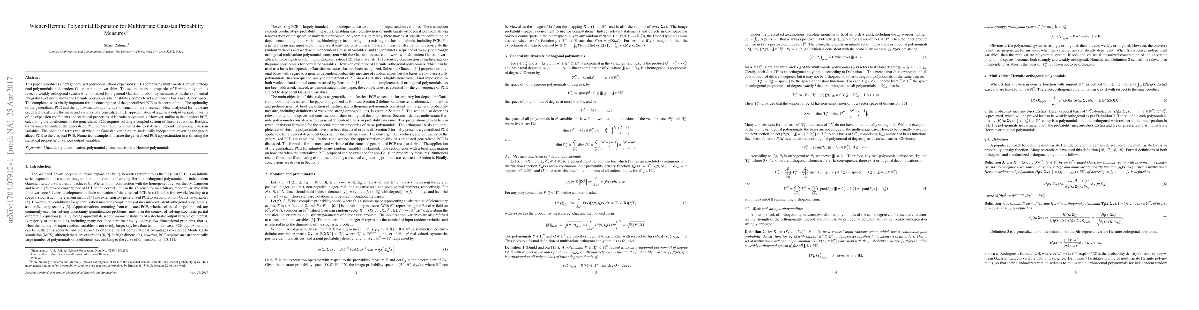 This paper proposes a new generalized polynomial chaos expansion using multivariate Hermite polynomials for Gaussian random variables, emphasizing its completeness and convergence. It introduces new analytical formulae for mean and variance, highlighting the need to solve a coupled system of linear equations for coefficients, especially for dependent variables.