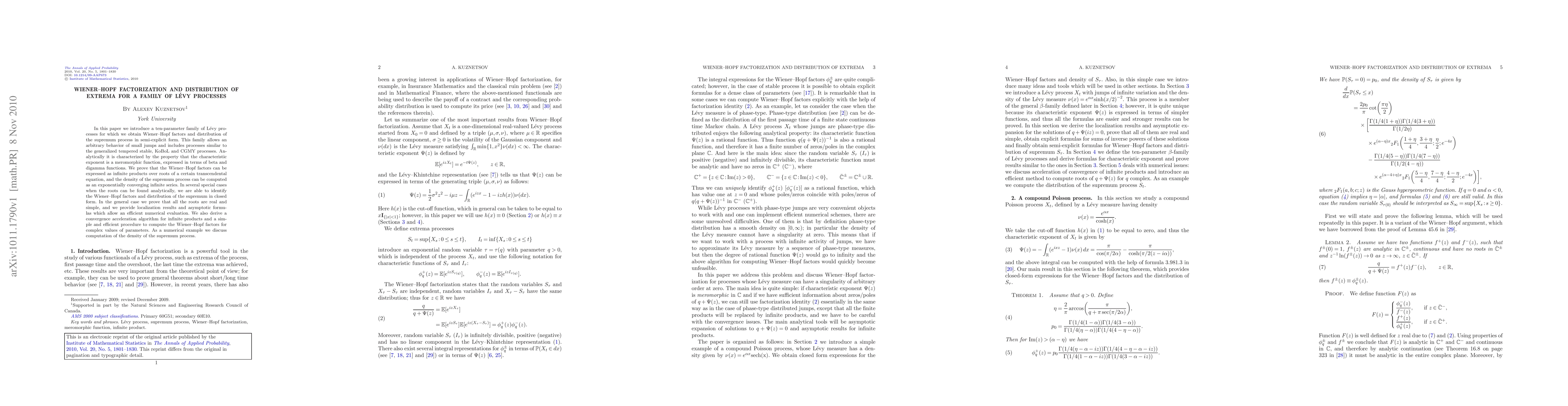 This paper explores a ten-parameter family of Lévy processes, deriving Wiener-Hopf factors and the distribution of their supremum processes in semi-explicit form. The analytical approach involves infinite products and exponentially converging series, providing efficient numerical evaluation methods.