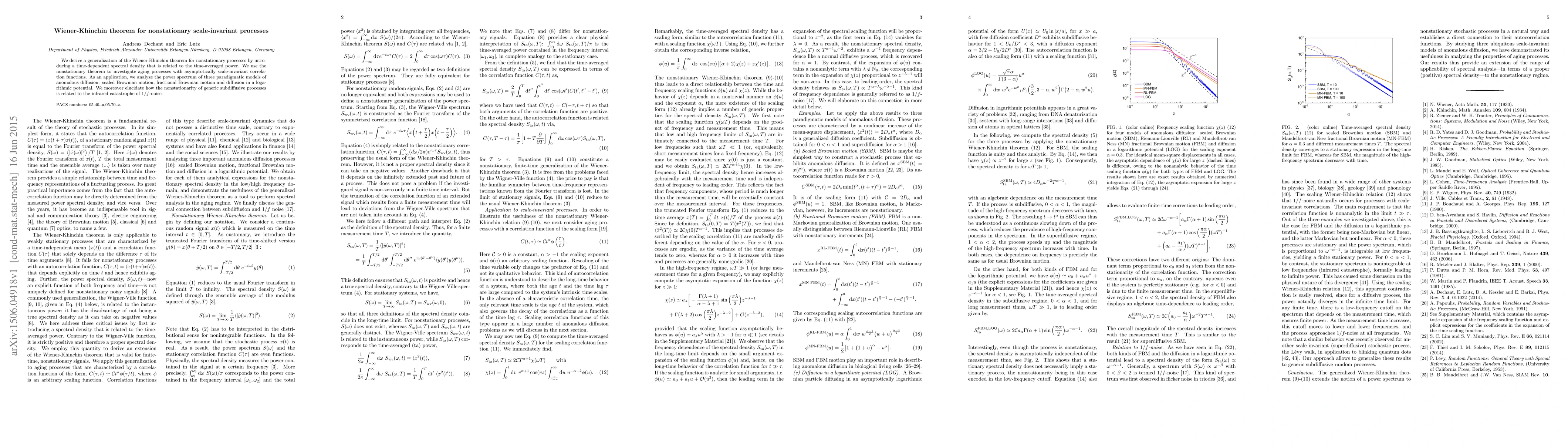 This paper generalizes the Wiener-Khinchin theorem for nonstationary processes by introducing a time-dependent spectral density linked to time-averaged power. It applies this to analyze aging processes and anomalous diffusion models, revealing the connection between subdiffusive nonstationarity and 1/f-noise's infrared catastrophe.