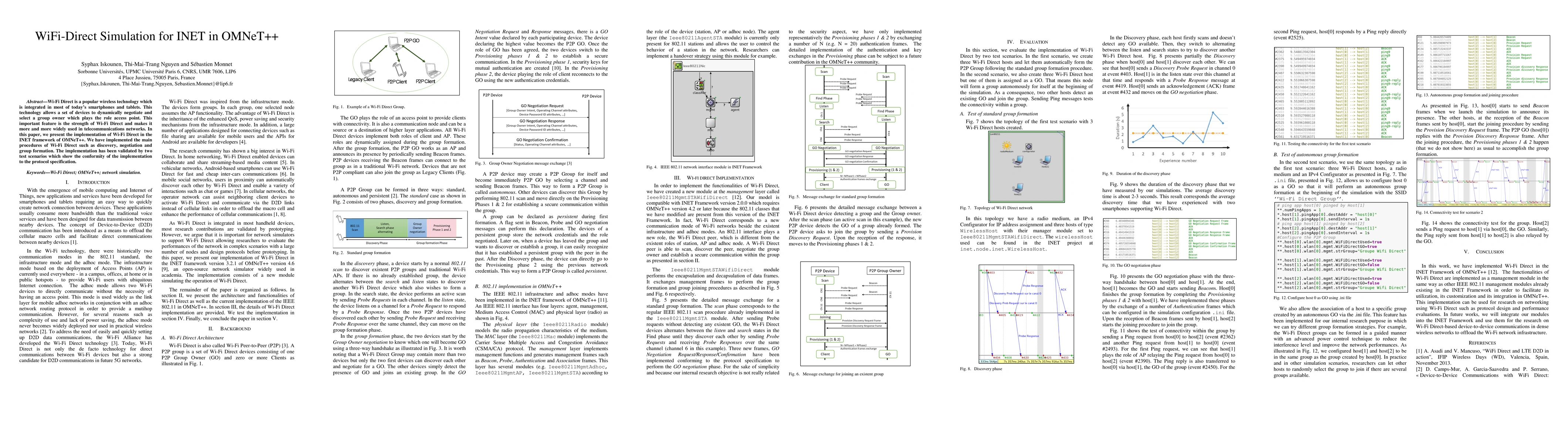 This paper presents an implementation of Wi-Fi Direct in the INET framework of OMNeT++, focusing on discovery, negotiation, and group formation. The implementation is validated through two test scenarios, confirming its adherence to the protocol specification.