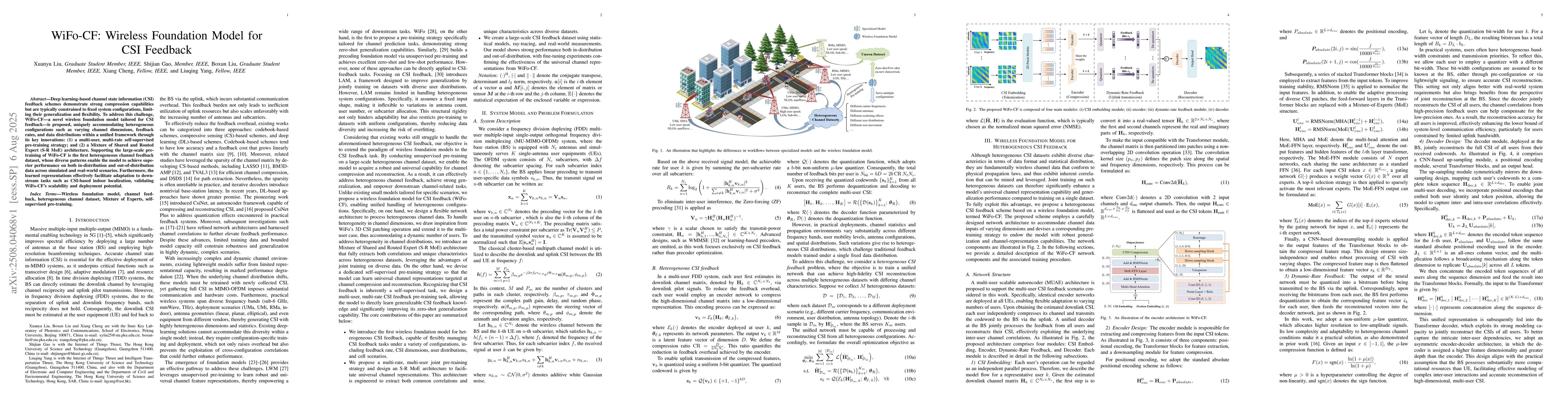 Deep learning-based channel state information (CSI) feedback schemes demonstrate strong compression capabilities but are typically constrained to fixed system configurations, limiting their generalization and flexibility. To address this challenge, WiFo-CF, a novel wireless foundation model tailored for CSI feedback, is proposed, uniquely accommodating heterogeneous configurations such as varying channel dimensions, feedback rates, and data distributions within a unified framework through its key innovations: (1) a multi-user, multi-rate self-supervised pre-training strategy; and (2) a Mixture of Shared and Routed Expert (S-R MoE) architecture. Supporting the large-scale pre-training of WiFo-CF is the first heterogeneous channel feedback dataset, whose diverse patterns enable the model to achieve superior performance on both in-distribution and out-of-distribution data across simulated and real-world scenarios. Furthermore, the learned representations effectively facilitate adaptation to downstream tasks such as CSI-based indoor localization, validating WiFo-CF's scalability and deployment potential.