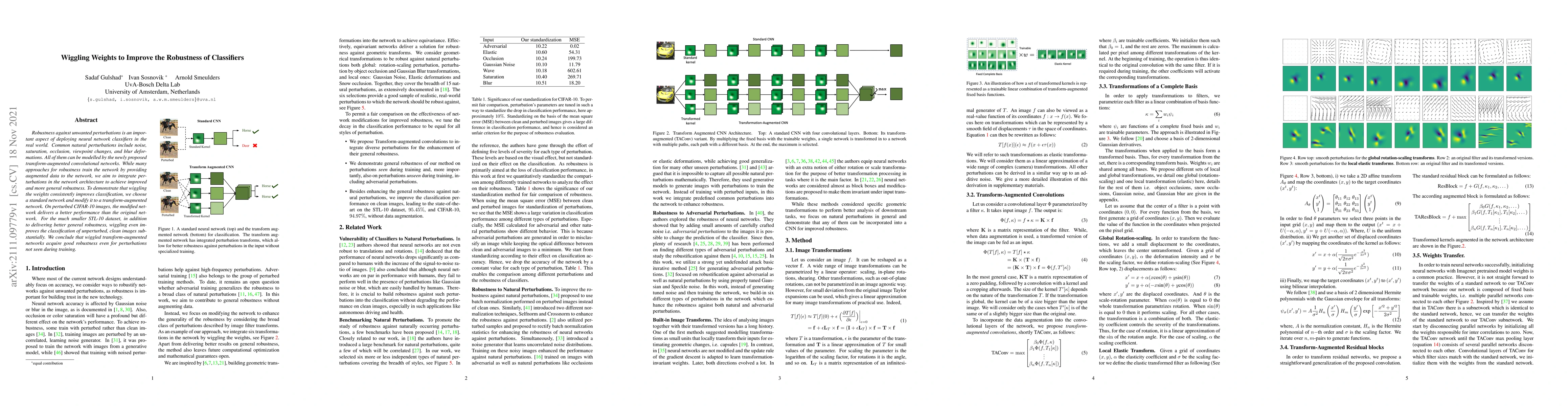 Robustness against unwanted perturbations is an important aspect of deploying neural network classifiers in the real world. Common natural perturbations include noise, saturation, occlusion, viewpoint changes, and blur deformations. All of them can be modelled by the newly proposed transform-augmented convolutional networks. While many approaches for robustness train the network by providing augmented data to the network, we aim to integrate perturbations in the network architecture to achieve improved and more general robustness. To demonstrate that wiggling the weights consistently improves classification, we choose a standard network and modify it to a transform-augmented network. On perturbed CIFAR-10 images, the modified network delivers a better performance than the original network. For the much smaller STL-10 dataset, in addition to delivering better general robustness, wiggling even improves the classification of unperturbed, clean images substantially. We conclude that wiggled transform-augmented networks acquire good robustness even for perturbations not seen during training.