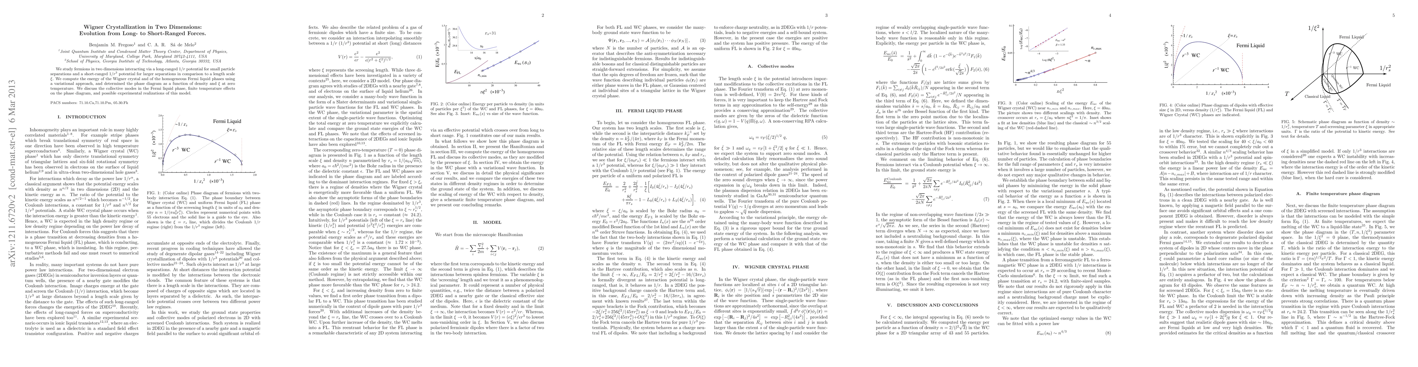 This paper investigates fermions in two dimensions under a hybrid long-range and short-range interaction potential, determining the phase diagram for Wigner crystallization versus Fermi liquid states at zero temperature. It also explores the collective modes and finite temperature effects.