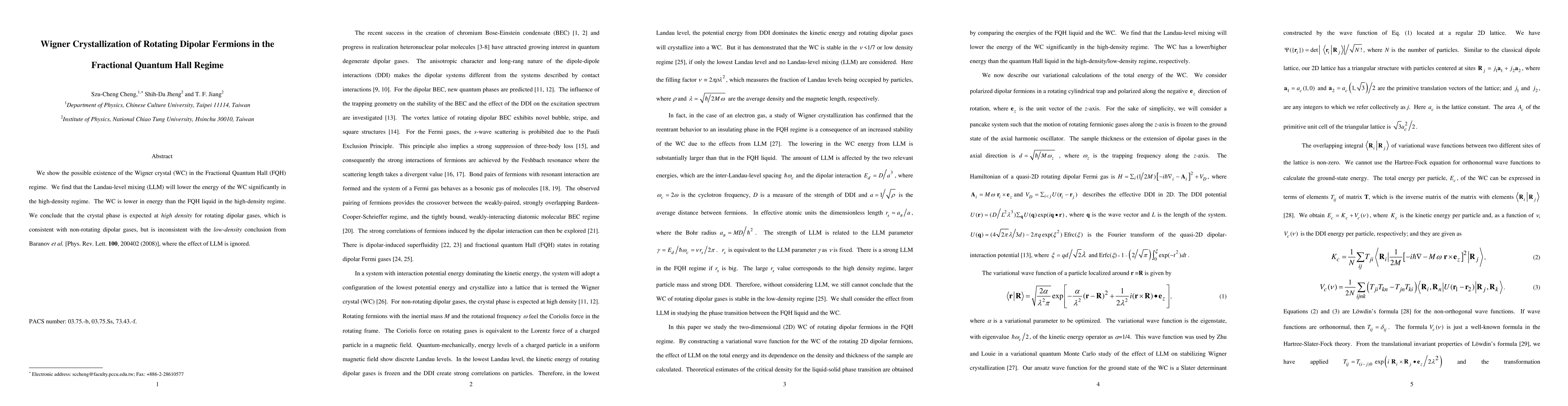 This paper explores the potential formation of a Wigner crystal in the Fractional Quantum Hall regime for rotating dipolar fermions, revealing that Landau-level mixing significantly lowers the crystal's energy compared to the liquid phase at high densities. The findings suggest a crystal phase at high density, differing from low-density conclusions that ignore Landau-level mixing.