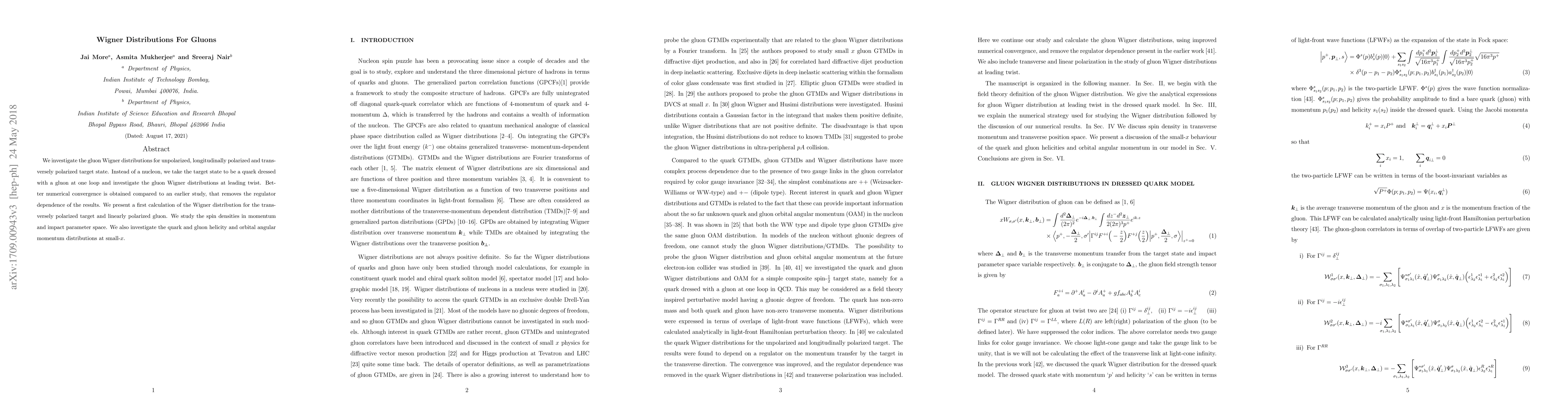 This research explores gluon Wigner distributions in unpolarized, longitudinally polarized, and transversely polarized target states, using a quark dressed with a gluon at one loop. It improves upon previous work by enhancing numerical convergence and eliminating regulator dependence. The study calculates the Wigner distribution for transversely polarized targets and linearly polarized gluons, analyzing spin densities in momentum and impact parameter space, as well as quark and gluon helicity and orbital angular momentum distributions at small-x.