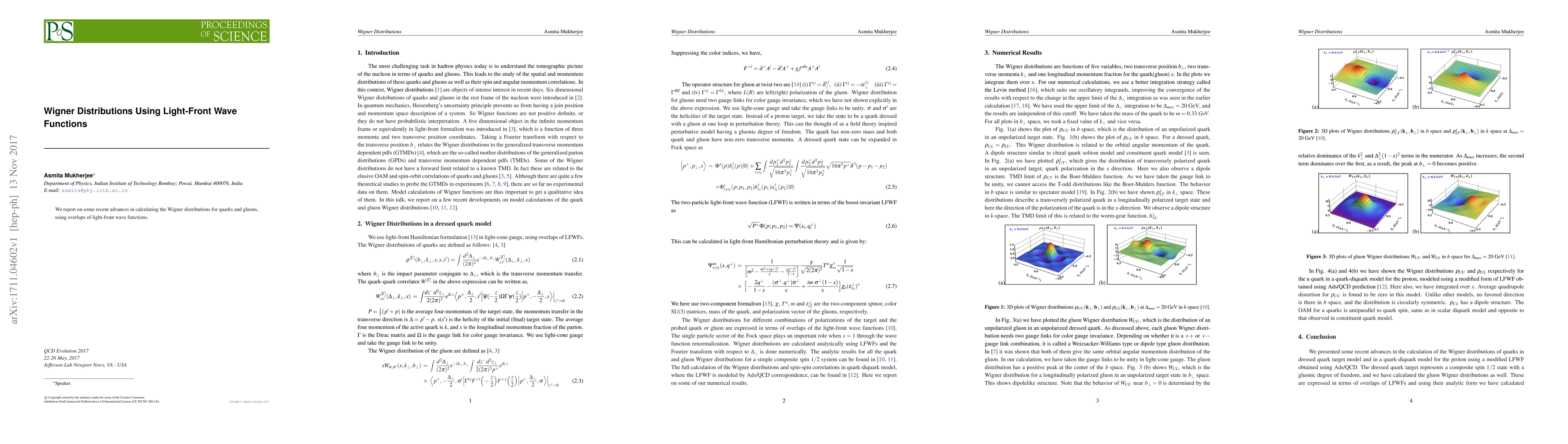 Summary: This paper discusses recent progress in determining Wigner distributions for quarks and gluons through the use of light-front wave functions, providing a novel approach to understanding their dynamics. The method leverages overlaps of light-front wave functions for precise calculations.