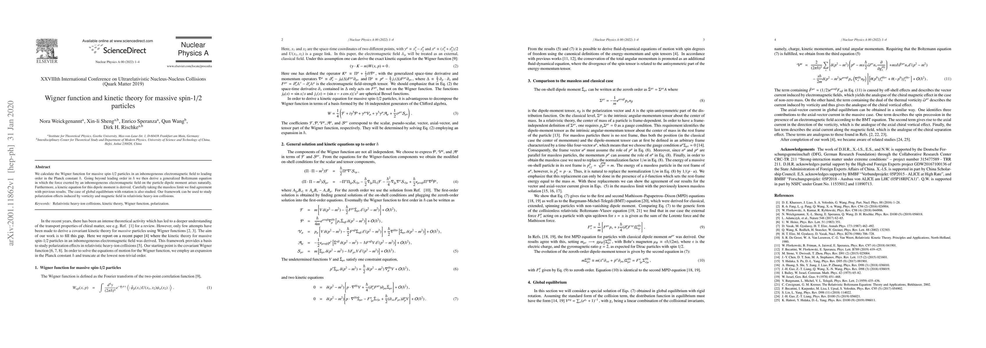 The paper presents a detailed derivation of the Wigner function and associated kinetic equations for massive spin-1/2 particles in inhomogeneous electromagnetic fields, providing a foundation for studying spin dynamics in relativistic heavy-ion collisions.
