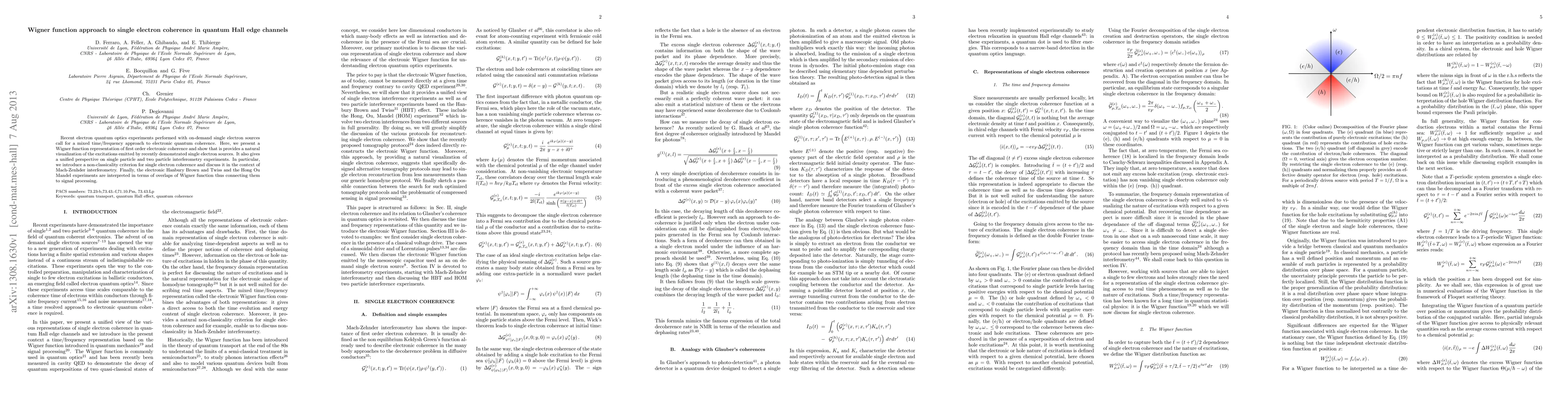 This paper utilizes the Wigner function to visualize first-order electronic coherence in quantum Hall edge channels, providing a unified perspective on single and two-particle interferometry. It introduces a non-classicality criterion for single electron coherence and connects quantum optical experiments to signal processing through the overlaps of the Wigner function.
