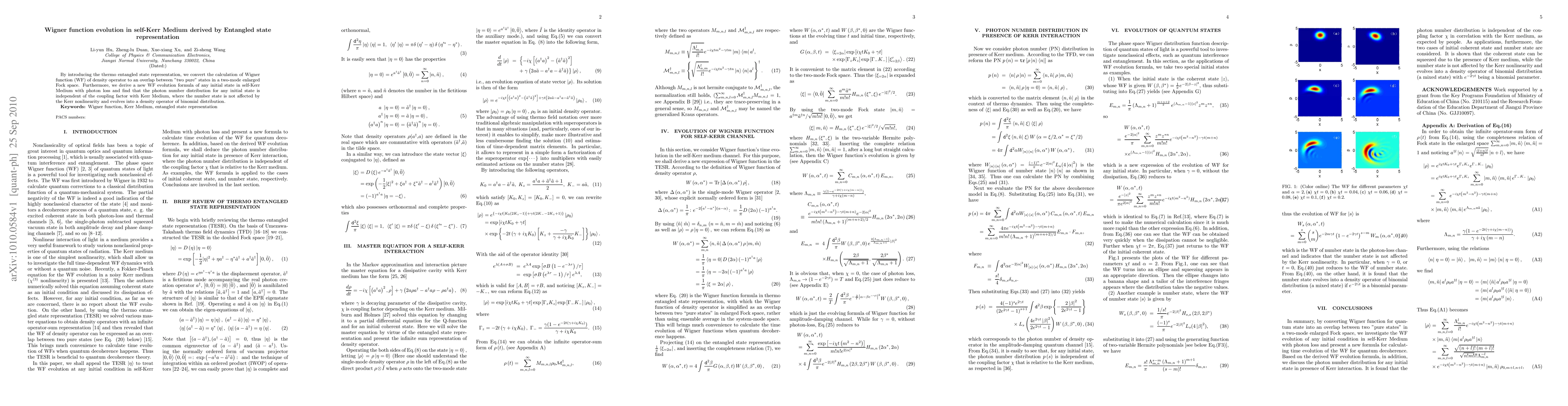This paper derives a new evolution formula for the Wigner function of any initial state in a self-Kerr medium using thermo entangled state representation, revealing that the photon number distribution remains independent of the Kerr coupling factor, with number states evolving into binomial distribution density operators.