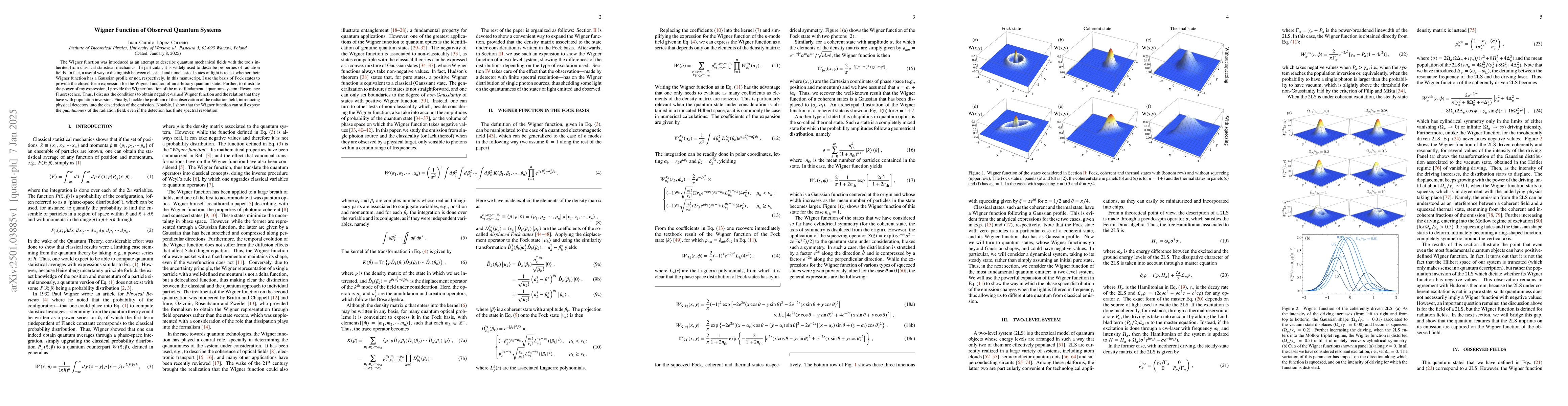 The paper presents a closed-form expression for the Wigner function of any quantum state using Fock states and applies it to Resonance Fluorescence, illustrating quantum features even with finite spectral resolution detection. It discusses the implications of negative-valued Wigner functions in relation to population inversion.