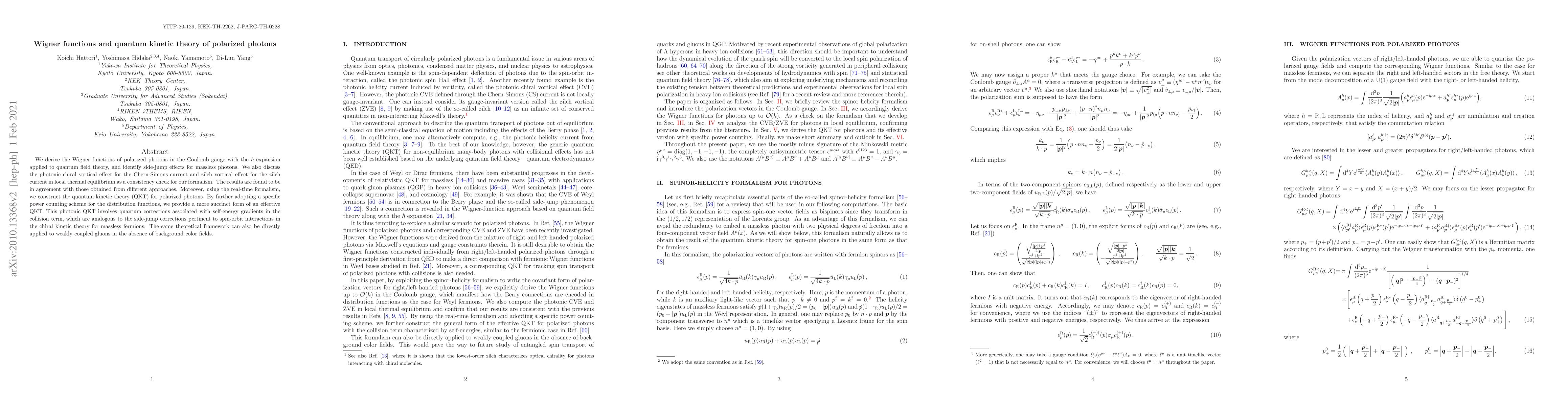We derive the Wigner functions of polarized photons in the Coulomb gauge with the $\hbar$ expansion applied to quantum field theory, and identify side-jump effects for massless photons. We also discuss the photonic chiral vortical effect for the Chern-Simons current and zilch vortical effect for the zilch current in local thermal equilibrium as a consistency check for our formalism. The results are found to be in agreement with those obtained from different approaches. Moreover, using the real-time formalism, we construct the quantum kinetic theory (QKT) for polarized photons. By further adopting a specific power counting scheme for the distribution functions, we provide a more succinct form of an effective QKT. This photonic QKT involves quantum corrections associated with self-energy gradients in the collision term, which are analogous to the side-jump corrections pertinent to spin-orbit interactions in the chiral kinetic theory for massless fermions. The same theoretical framework can also be directly applied to weakly coupled gluons in the absence of background color fields.