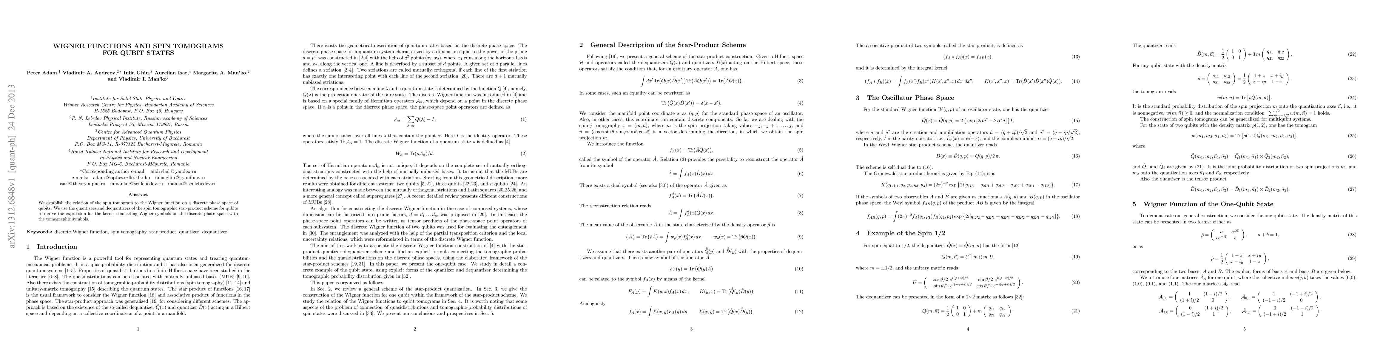 This paper establishes a connection between spin tomograms and Wigner functions for qubit states, utilizing the spin tomographic star-product scheme to derive a kernel relating discrete phase space Wigner symbols to tomographic symbols.