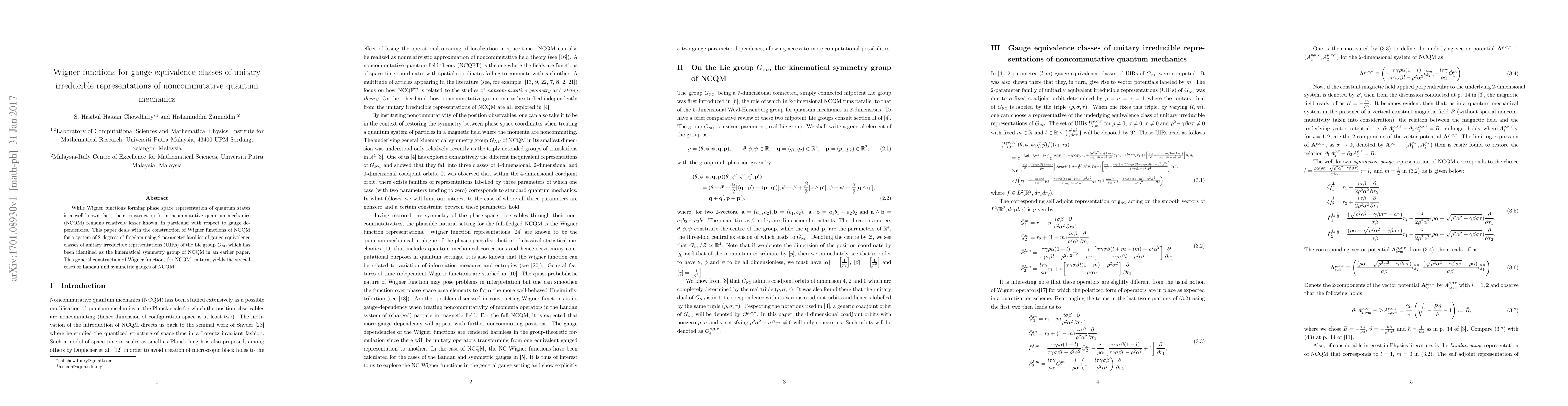 This paper constructs Wigner functions for noncommutative quantum mechanics (NCQM) using gauge equivalence classes of unitary irreducible representations, addressing gauge dependencies. The results include the special cases of Landau and symmetric gauges.
