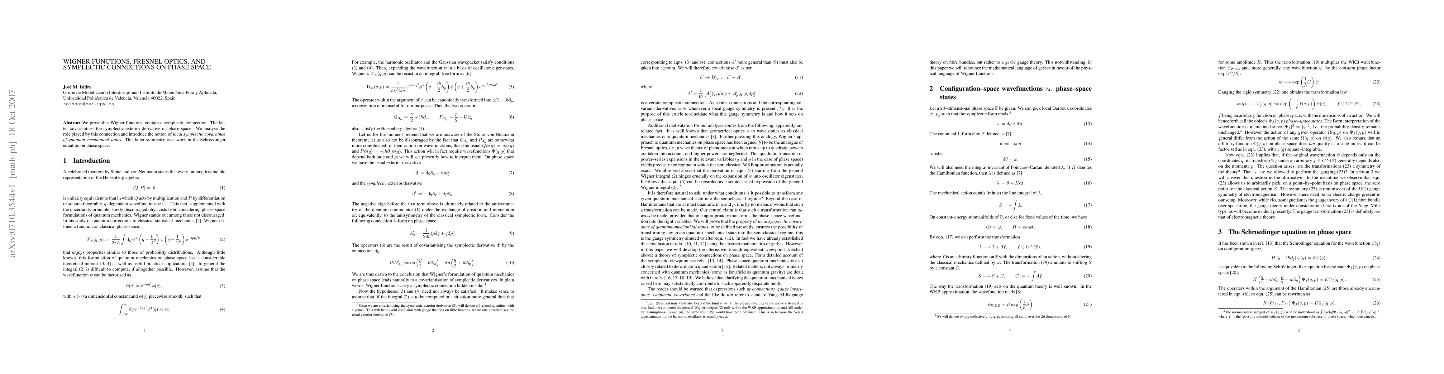 Summary: This paper demonstrates that Wigner functions incorporate a symplectic connection, which generalizes the symplectic exterior derivative on phase space. It explores the implications of this connection, introducing the concept of local symplectic covariance in quantum mechanics, which is evident in the Schrödinger equation on phase space.