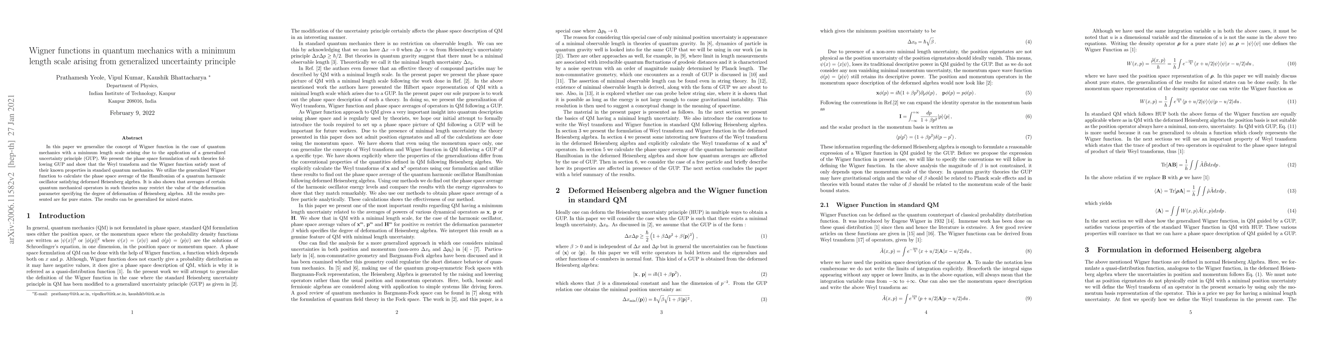 In this paper we generalize the concept of Wigner function in the case of quantum mechanics with a minimum length scale arising due to the application of a generalized uncertainty principle (GUP). We present the phase space formulation of such theories following GUP and show that the Weyl transform and the Wigner function does satisfy some of their known properties in standard quantum mechanics. We utilise the generalized Wigner function to calculate the phase space average of the Hamiltonian of a quantum harmonic oscillator satisfying deformed Heisenberg algebra. It is also shown that averages of certain quantum mechanical operators in such theories may restrict the value of the deformation parameter specifying the degree of deformation of Heisenberg algebra. All the results presented are for pure states. The results can be generalized for mixed states.