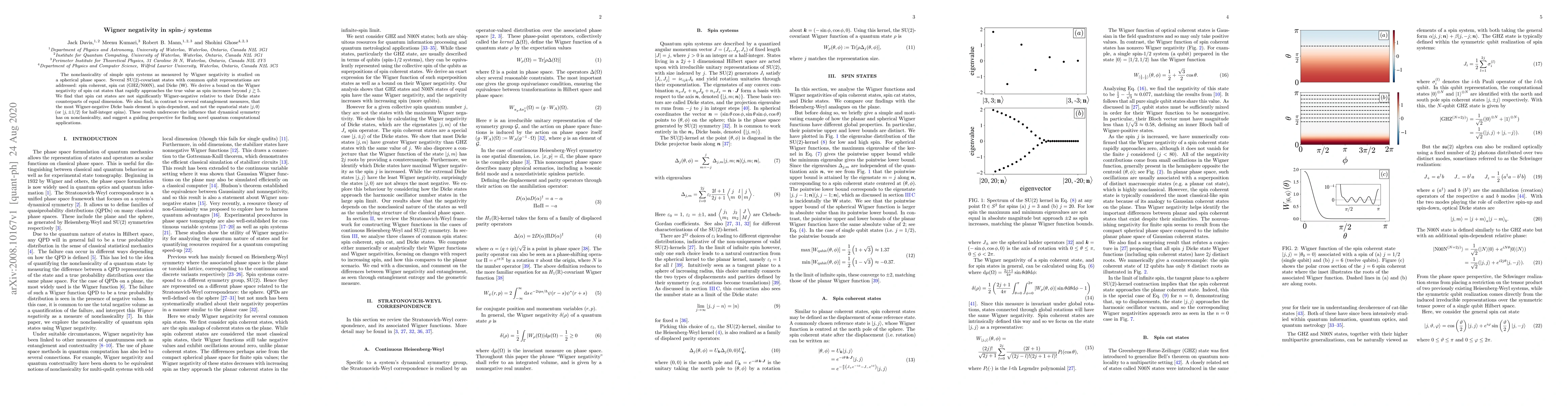 The nonclassicality of simple spin systems as measured by Wigner negativity is studied on a spherical phase space. Several SU(2)-covariant states with common qubit representations are addressed: spin coherent, spin cat (GHZ/N00N), and Dicke ($\textsf{W}$). We derive a bound on the Wigner negativity of spin cat states that rapidly approaches the true value as spin increases beyond $j \gtrsim 5$. We find that spin cat states are not significantly Wigner-negative relative to their Dicke state counterparts of equal dimension. We also find, in contrast to several entanglement measures, that the most Wigner-negative Dicke basis element is spin-dependent, and not the equatorial state $| j,0 \rangle$ (or $|j,\pm 1/2 \rangle$ for half-integer spins). These results underscore the influence that dynamical symmetry has on nonclassicality, and suggest a guiding perspective for finding novel quantum computational applications.