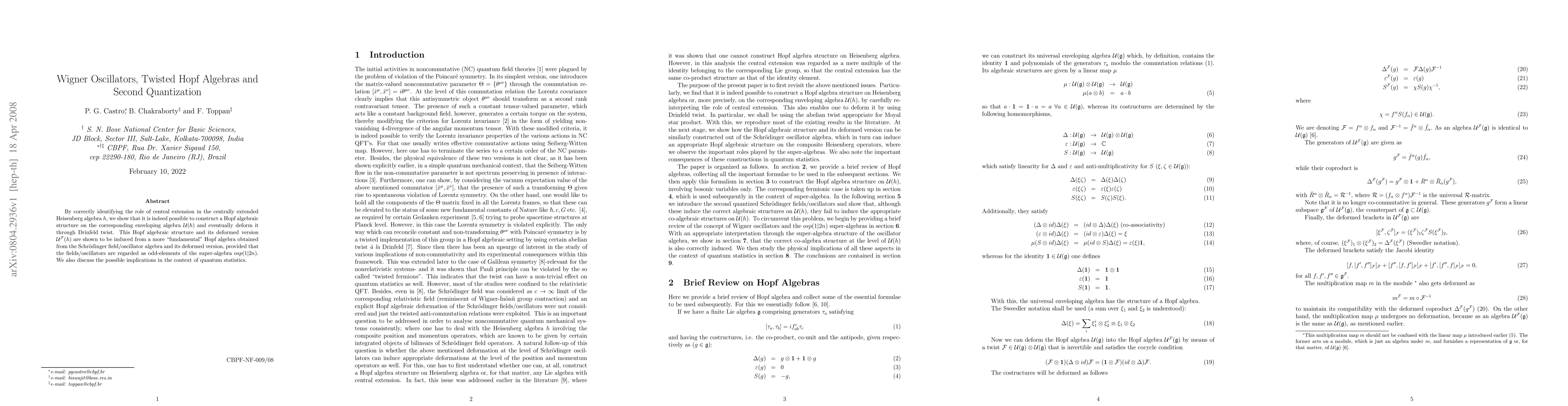 By correctly identifying the role of central extension in the centrally extended Heisenberg algebra h, we show that it is indeed possible to construct a Hopf algebraic structure on the corresponding enveloping algebra U(h) and eventually deform it through Drinfeld twist. This Hopf algebraic structure and its deformed version U^F(h) are shown to be induced from a more fundamental Hopf algebra obtained from the Schroedinger field/oscillator algebra and its deformed version, provided that the fields/oscillators are regarded as odd-elements of the super-algebra osp(1|2n). We also discuss the possible implications in the context of quantum statistics.
