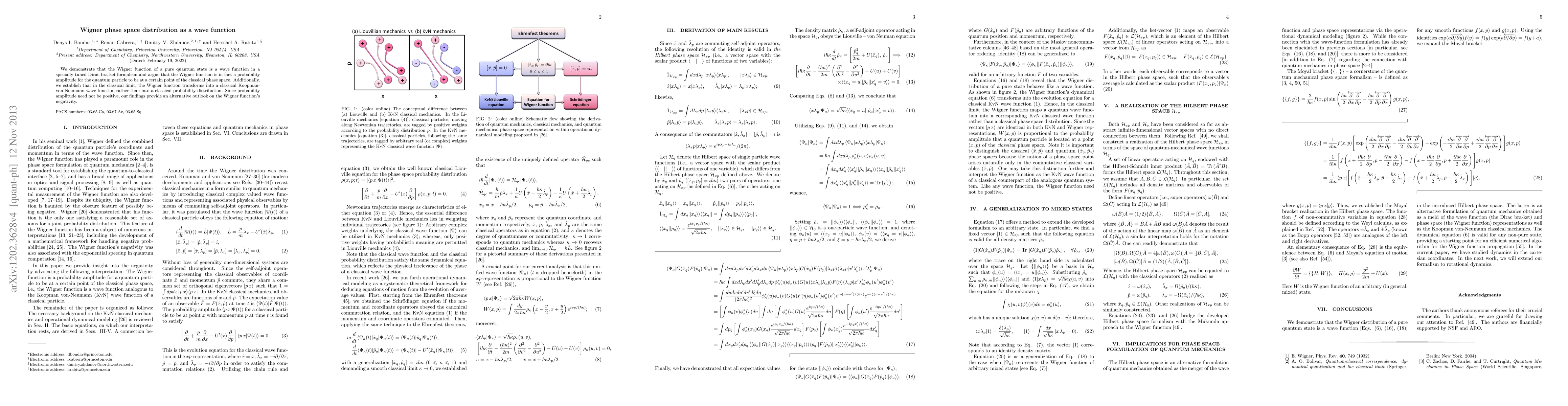 The Wigner function of a pure quantum state is shown to be a wave function in a modified Dirac formalism, representing the probability amplitude for a particle's position in classical phase space. In the classical limit, it transforms into a Koopman-von Neumann wave function instead of a classical probability distribution, offering insight into the Wigner function's inherent negativity.