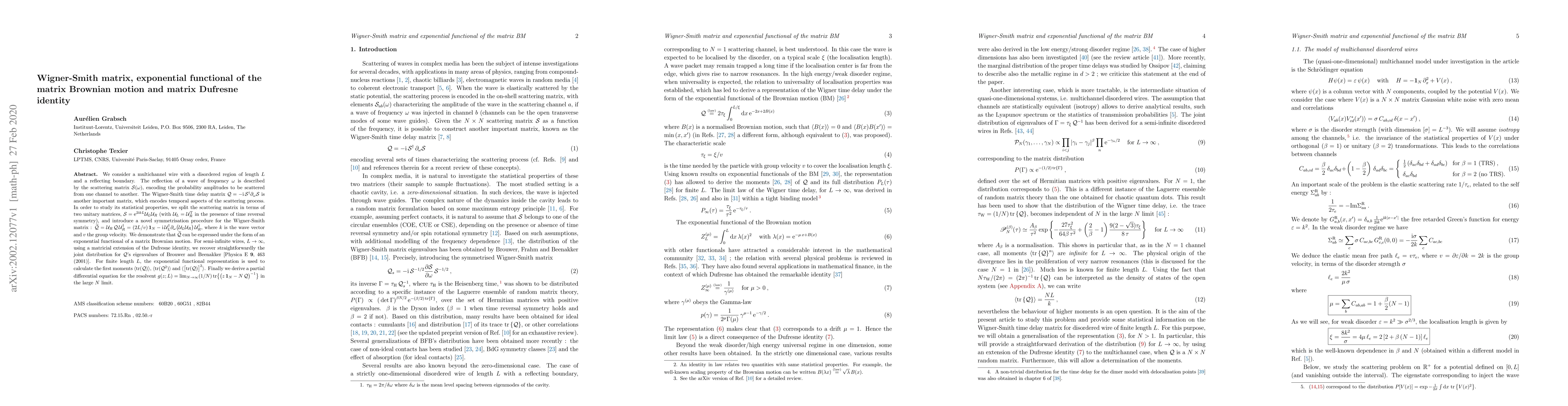 We consider a multichannel wire with a disordered region of length $L$ and a reflecting boundary. The reflection of a wave of frequency $\omega$ is described by the scattering matrix $\mathcal{S}(\omega)$, encoding the probability amplitudes to be scattered from one channel to another. The Wigner-Smith time delay matrix $\mathcal{Q}=-\mathrm{i}\, \mathcal{S}^\dagger\partial_\omega\mathcal{S}$ is another important matrix encoding temporal aspects of the scattering process. In order to study its statistical properties, we split the scattering matrix in terms of two unitary matrices, $\mathcal{S}=\mathrm{e}^{2\mathrm{i}kL}\mathcal{U}_L\mathcal{U}_R$ (with $\mathcal{U}_L=\mathcal{U}_R^\mathrm{T}$ in the presence of TRS), and introduce a novel symmetrisation procedure for the Wigner-Smith matrix: $\widetilde{\mathcal{Q}} =\mathcal{U}_R\,\mathcal{Q}\,\mathcal{U}_R^\dagger = (2L/v)\,\mathbf{1}_N -\mathrm{i}\,\mathcal{U}_L^\dagger\partial_\omega\big(\mathcal{U}_L\mathcal{U}_R\big)\,\mathcal{U}_R^\dagger$, where $k$ is the wave vector and $v$ the group velocity. We demonstrate that $\widetilde{\mathcal{Q}}$ can be expressed under the form of an exponential functional of a matrix Brownian motion. For semi-infinite wires, $L\to\infty$, using a matricial extension of the Dufresne identity, we recover straightforwardly the joint distribution for $\mathcal{Q}$'s eigenvalues of Brouwer and Beenakker [Physica E 9 (2001) p. 463]. For finite length $L$, the exponential functional representation is used to calculate the first moments $\langle\mathrm{tr}(\mathcal{Q})\rangle$, $\langle\mathrm{tr}(\mathcal{Q}^2)\rangle$ and $\langle\big[\mathrm{tr}(\mathcal{Q})\big]^2\rangle$. Finally we derive a partial differential equation for the resolvent $g(z;L)=\lim_{N\to\infty}(1/N)\,\mathrm{tr}\big\{\big( z\,\mathbf{1}_N - N\,\mathcal{Q}\big)^{-1}\big\}$ in the large $N$ limit.