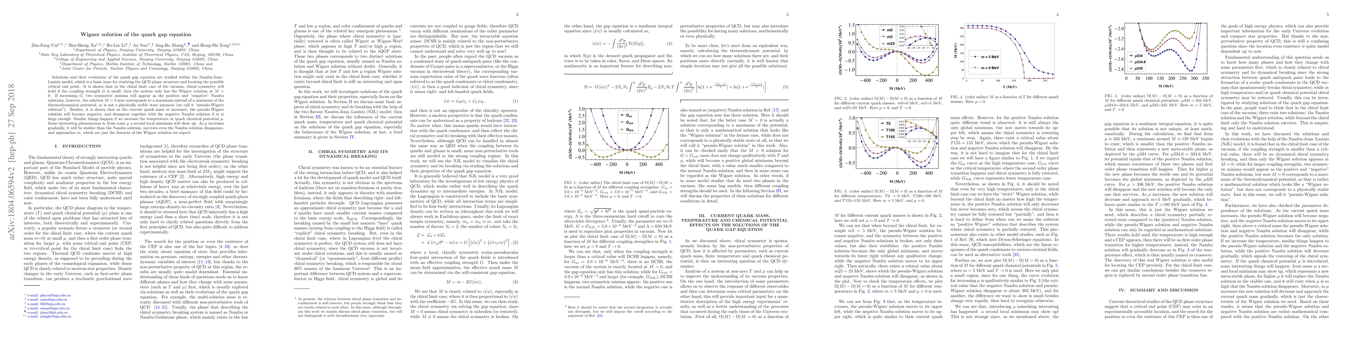 Solutions and their evolutions of the quark gap equation are studied within the Nambu-Jona--Lasinio model, which is a basic issue for studying the QCD phase structure and locating the possible critical end point. It is shown that in the chiral limit case of the vacuum, chiral symmetry will hold if the coupling strength $G$ is small, then the system only has the Wigner solution at $M=0$. If increasing $G$, two symmetric minima will appear as the positive and `negative' Nambu solutions, however, the solution $M=0$ now corresponds to a maximum instead of a minimum of the thermodynamical potential, so is not a physically stable state anymore (we call it `pseudo-Wigner solution'). Besides, it is shown that as the current quark mass $m$ increases, the pseudo-Wigner solution will become negative, and disappear together with the negative Nambu solution if $m$ is large enough. Similar things happen if we increase the temperature or quark chemical potential $\mu$. Some interesting phenomenon is, from some $\mu$ a second local minimum will show up. As $\mu$ increases gradually, it will be stabler than the Nambu solution, survives even the Nambu solution disappears, and approaches $m$, which are just the features of the Wigner solution we expect.
