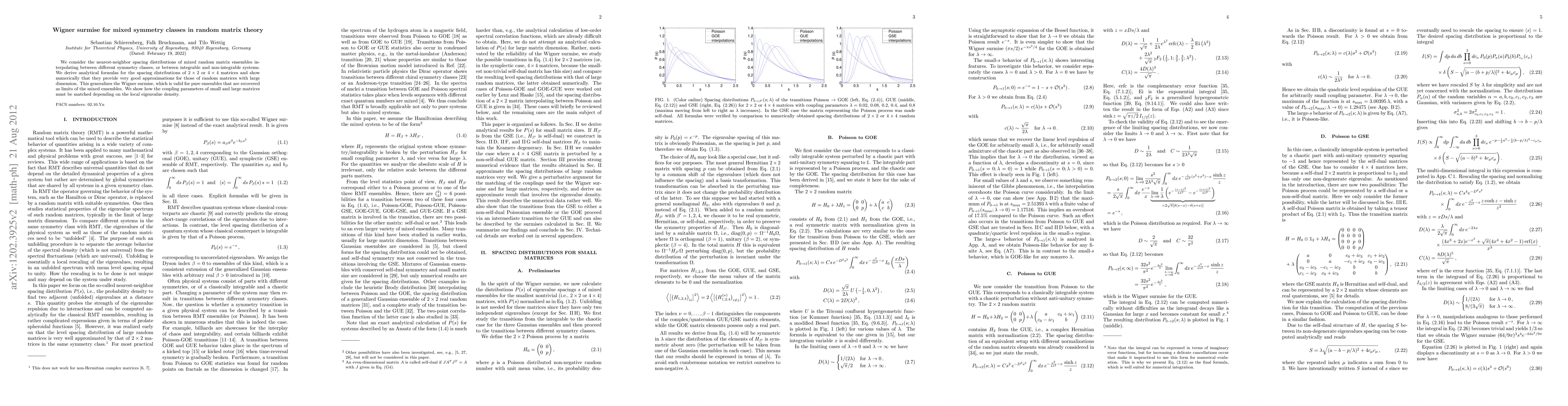 This paper generalizes the Wigner surmise to mixed symmetry classes in random matrix theory, deriving analytical formulas for the nearest-neighbor spacing distributions of 2x2 and 4x4 matrices and demonstrating their accuracy for large-dimensional random matrices. It highlights the importance of matching coupling parameters based on local eigenvalue density.