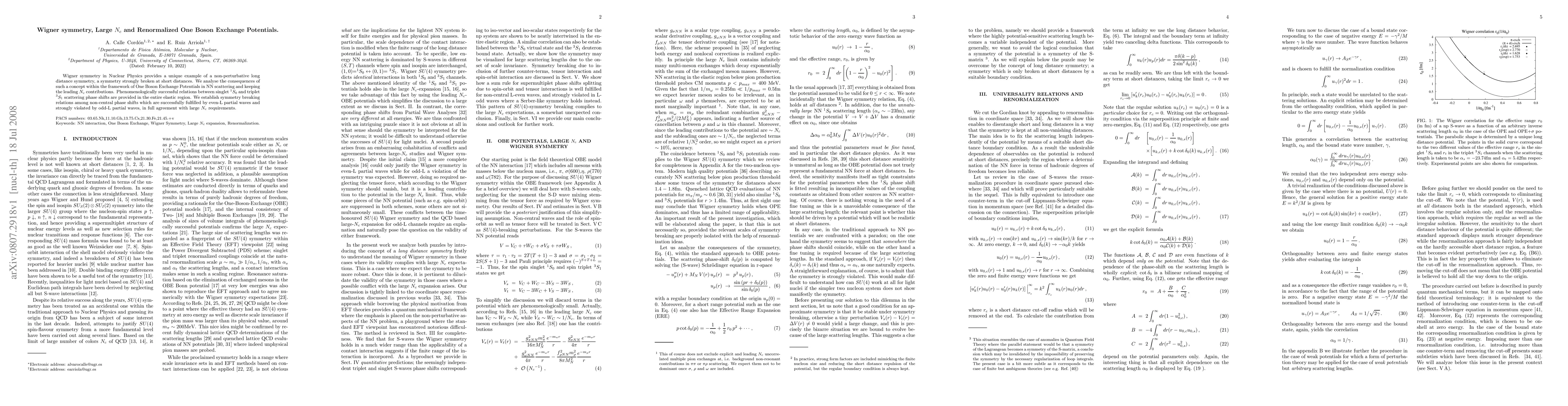 Wigner symmetry in Nuclear Physics provides a unique example of a non-perturbative long distance symmetry, a symmetry strongly broken at short distances. We analyse the consequences of such a concept within the framework of One Boson Exchange Potentials in NN scattering and keeping the leading Nc contributions. Phenomenologically successful relations between singlet 1S0 and triplet 3S1 scattering phase shifts are provided in the entire elastic region. We establish symmetry breaking relations among non-central phase shifts which are successfully fulfilled by even-L partial waves and strongly violated by odd-L partial waves, in full agreement with large Nc requirements.
