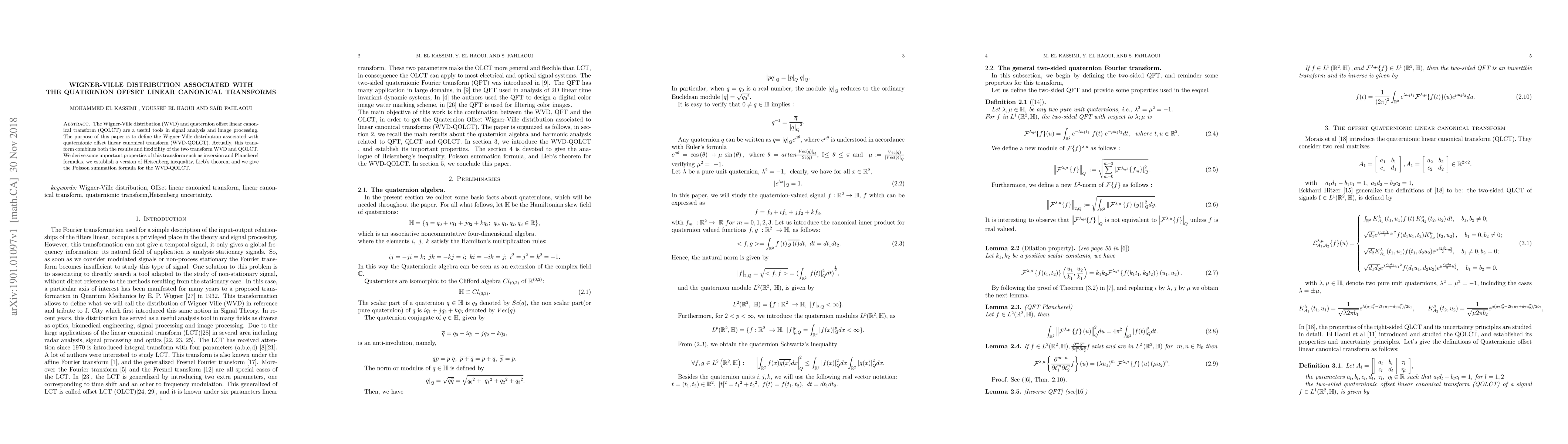 The Wigner-Ville distribution (WVD) and quaternion offset linear canonical transform (QOLCT) are a useful tools in signal analysis and image processing. The purpose of this paper is to define the Wigner-Ville distribution associated with quaternionic offset linear canonical transform (WVD-QOLCT). Actually, this transform combines both the results and flexibility of the two transform WVD and QOLCT. We derive some important properties of this transform such as inversion and Plancherel formulas, we establish a version of Heisenberg inequality, Lieb's theorem and we give the Poisson summation formula for the WVD-QOLCT.