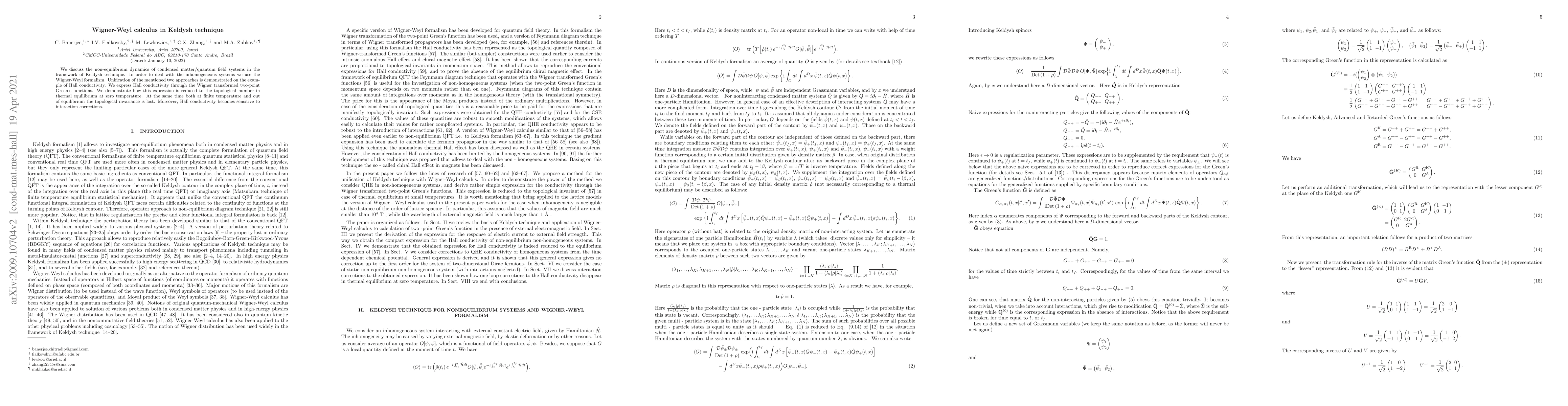 We discuss the non-equilibrium dynamics of condensed matter/quantum field systems in the framework of Keldysh technique. In order to deal with the inhomogeneous systems we use the Wigner-Weyl formalism. Unification of the mentioned two approaches is demonstrated on the example of Hall conductivity. We express Hall conductivity through the Wigner transformed two-point Green's functions. We demonstrate how this expression is reduced to the topological number in thermal equilibrium at zero temperature. At the same time both at finite temperature and out of equilibrium the topological invariance is lost. Moreover, Hall conductivity becomes sensitive to interaction corrections.