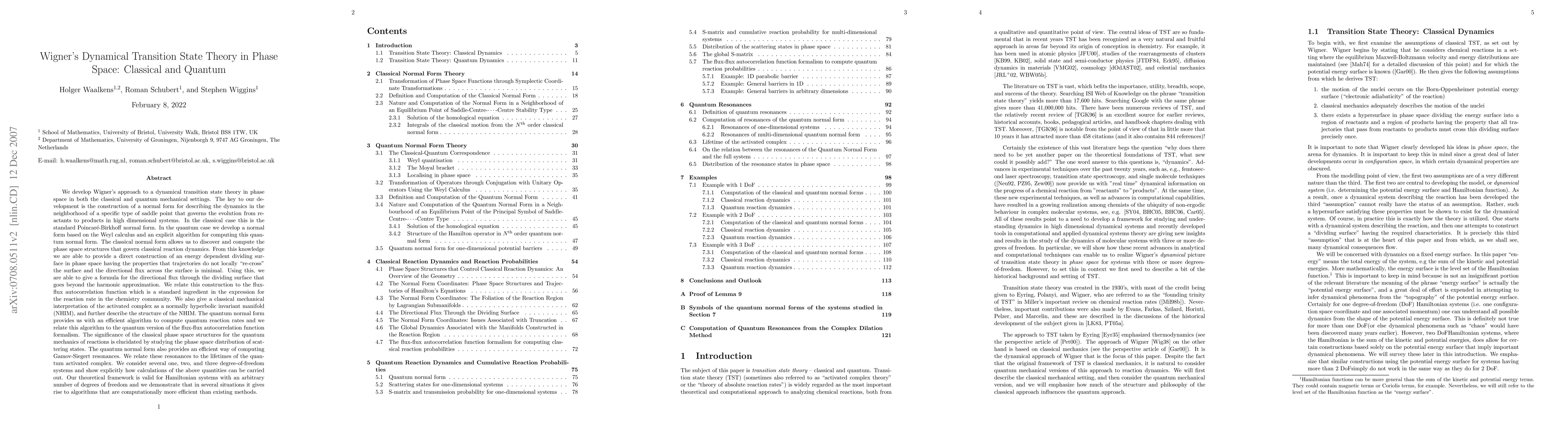 A quantum version of transition state theory based on a quantum normal form (QNF) expansion about a saddle-centre-...-centre equilibrium point is presented. A general algorithm is provided which allows one to explictly compute QNF to any desired order. This leads to an efficient procedure to compute quantum reaction rates and the associated Gamov-Siegert resonances. In the classical limit the QNF reduces to the classical normal form which leads to the recently developed phase space realisation of Wigner's transition state theory. It is shown that the phase space structures that govern the classical reaction d ynamicsform a skeleton for the quantum scattering and resonance wavefunctions which can also be computed from the QNF. Several examples are worked out explicitly to illustrate the efficiency of the procedure presented.