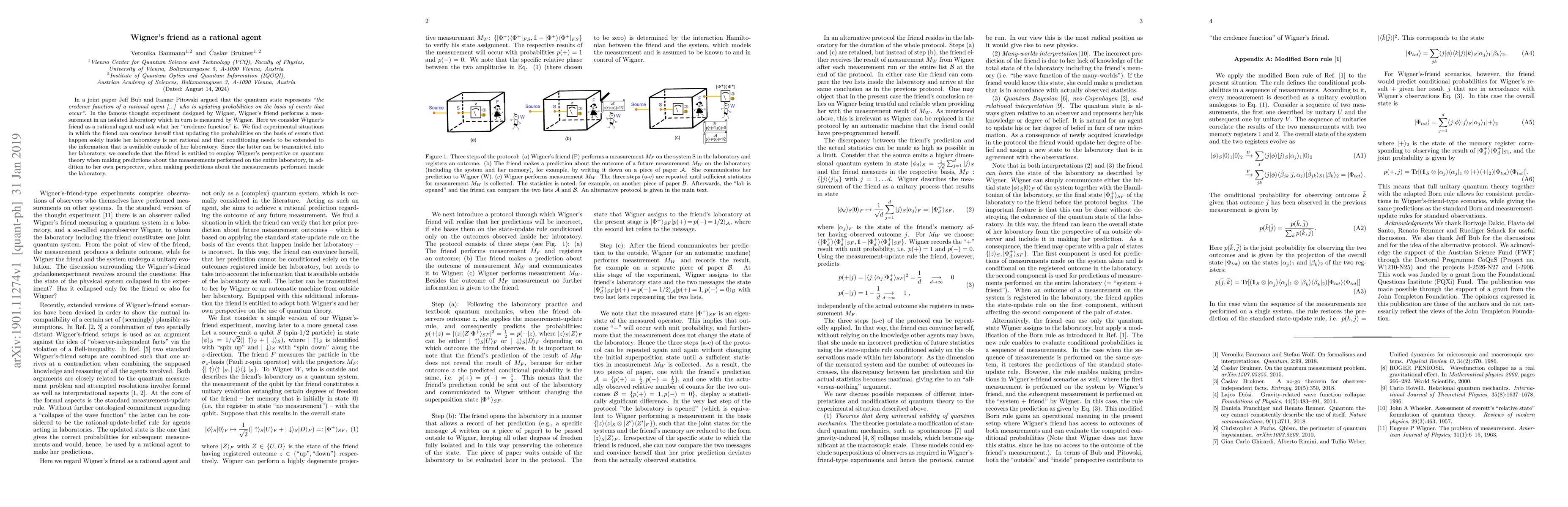 This paper explores Wigner's friend as a rational agent in quantum mechanics, finding that updating probabilities based solely on internal events may not be rational. It concludes that the friend must incorporate external information, thus justifying the use of both her own and Wigner's perspectives in quantum predictions.
