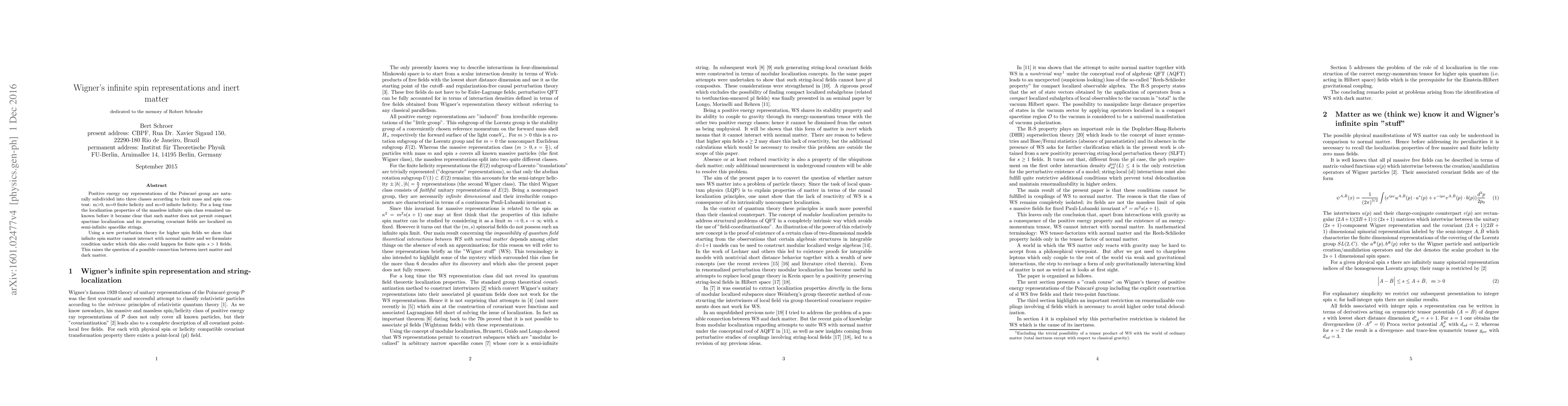 Positive energy ray representations of the Poincar\'e group are naturally subdivided into three classes according to their mass and spin content: m>0, m=0 finite helicity and m=0 infinite helicity. For a long time the localization properties of the massless infinite spin class remained unknown before it became clear that such matter does not permit compact spactime localization and its generating covariant fields are localized on semi-infinite spacelike strings. Using a new perturbation theory for higher spin fields we show that infinite spin matter cannot interact with normal matter and we formulate condition under which this also could happen for finite spin s>1 fields. This raises the question of a possible connection between inert matter and dark matter.