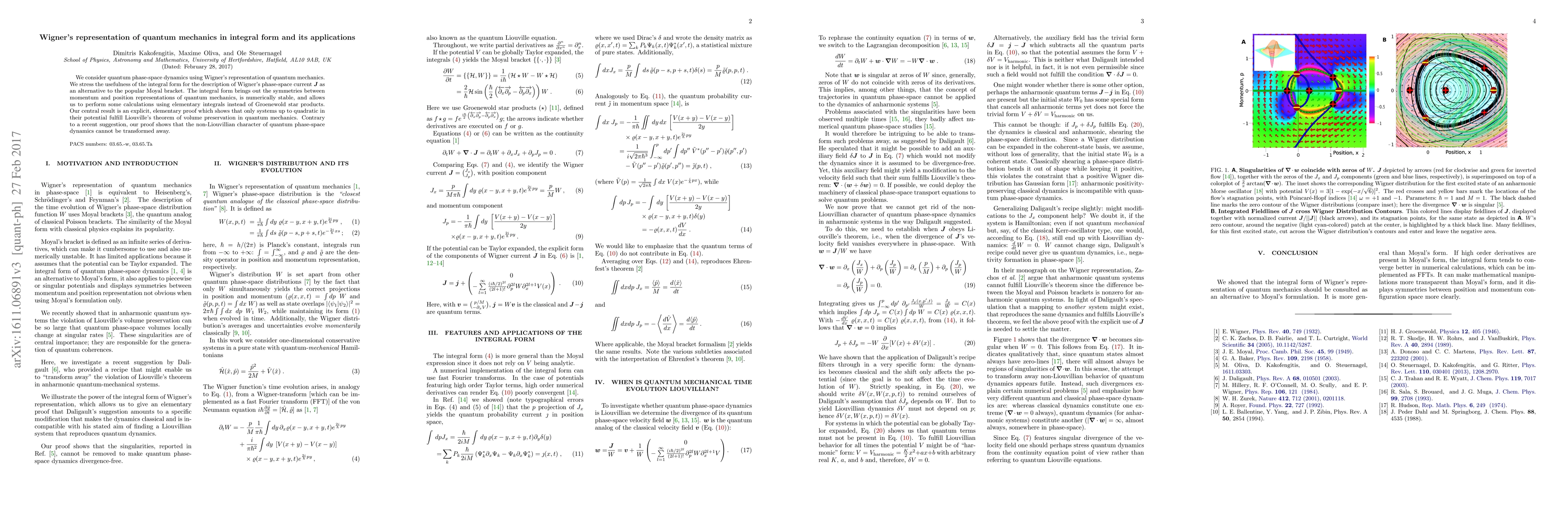 This paper explores quantum phase-space dynamics via Wigner's representation, emphasizing the integral form for describing the Wigner phase-space current. It demonstrates that this approach highlights symmetries between momentum and position representations, is numerically stable, and simplifies calculations. The study concludes that only quadratic potential systems obey Liouville's theorem, refuting the idea that non-Liouvillian dynamics can be eliminated.