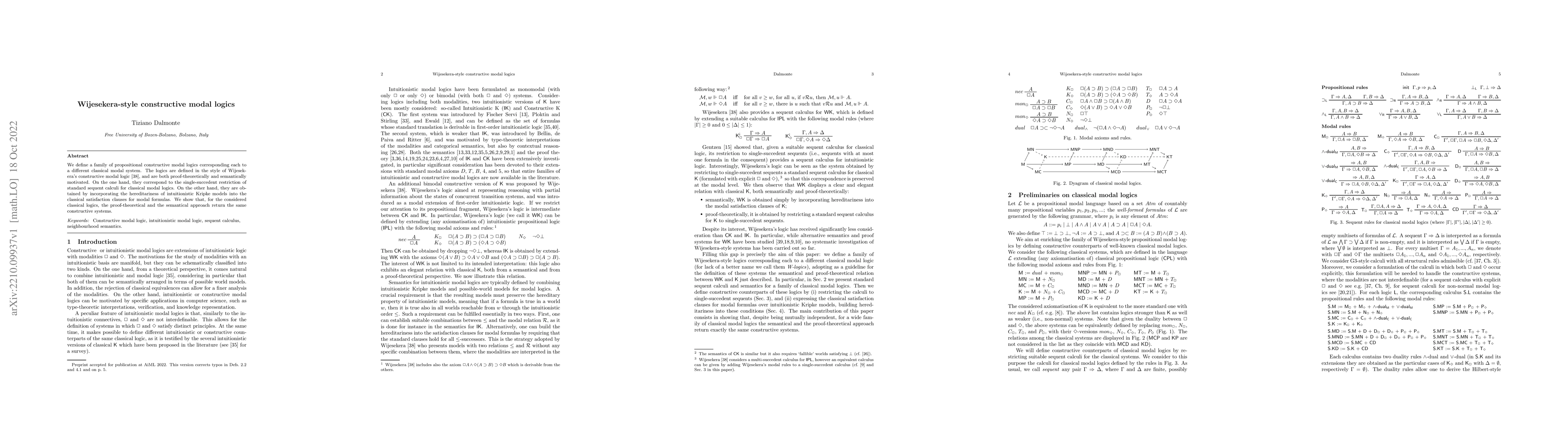 This paper introduces a family of constructive modal logics based on Wijesekera's style, corresponding to various classical modal systems. These logics are derived through both proof-theoretic methods and semantic approaches using intuitionistic Kripke models, showing equivalence between the two methods.