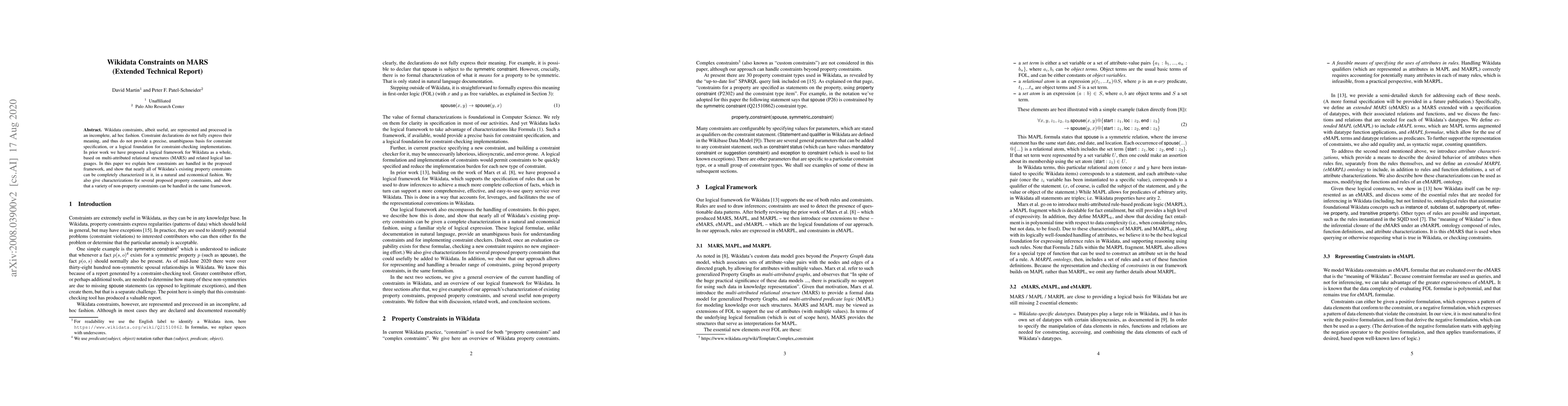 This paper proposes a logical framework for handling Wikidata constraints using multi-attributed relational structures (MARS), enabling precise and unambiguous constraint specification and checking.