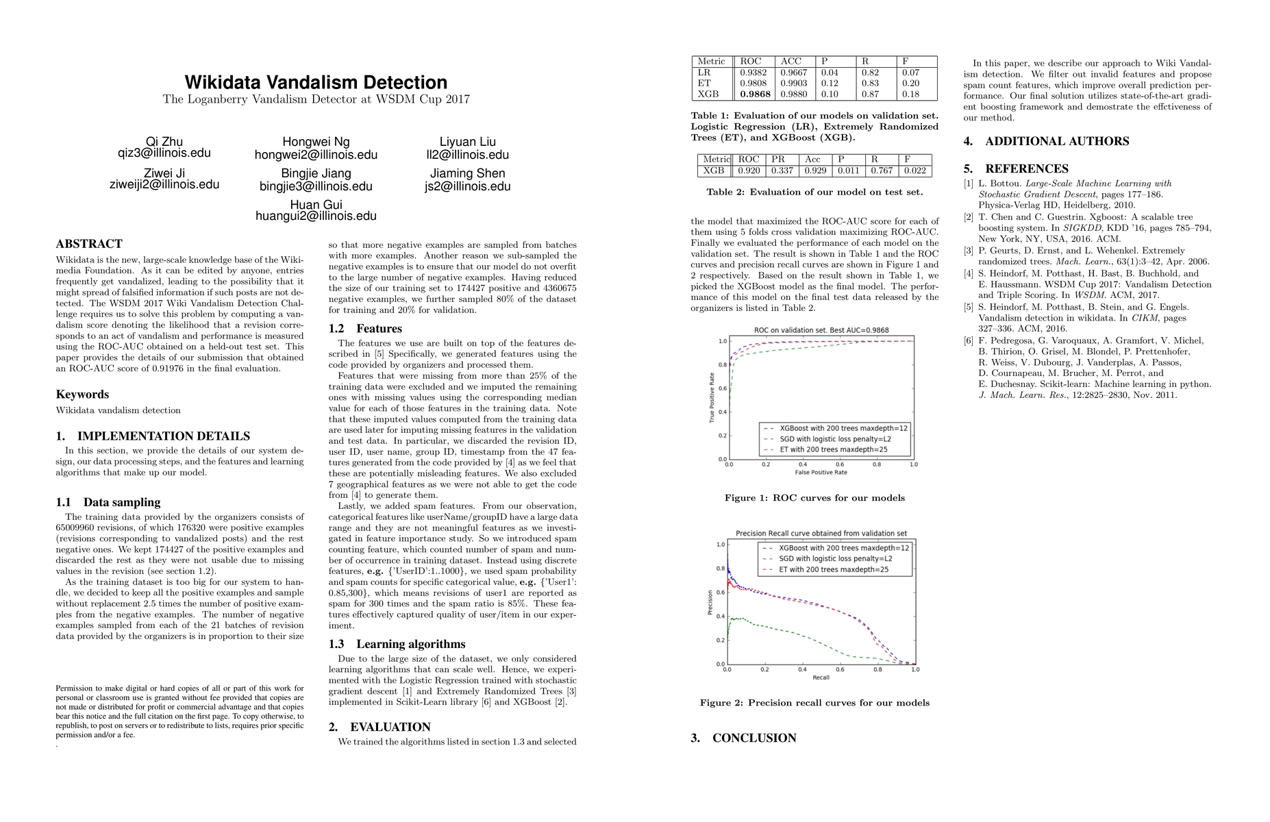Wikidata is the new, large-scale knowledge base of the Wikimedia Foundation. As it can be edited by anyone, entries frequently get vandalized, leading to the possibility that it might spread of falsified information if such posts are not detected. The WSDM 2017 Wiki Vandalism Detection Challenge requires us to solve this problem by computing a vandalism score denoting the likelihood that a revision corresponds to an act of vandalism and performance is measured using the ROC-AUC obtained on a held-out test set. This paper provides the details of our submission that obtained an ROC-AUC score of 0.91976 in the final evaluation.