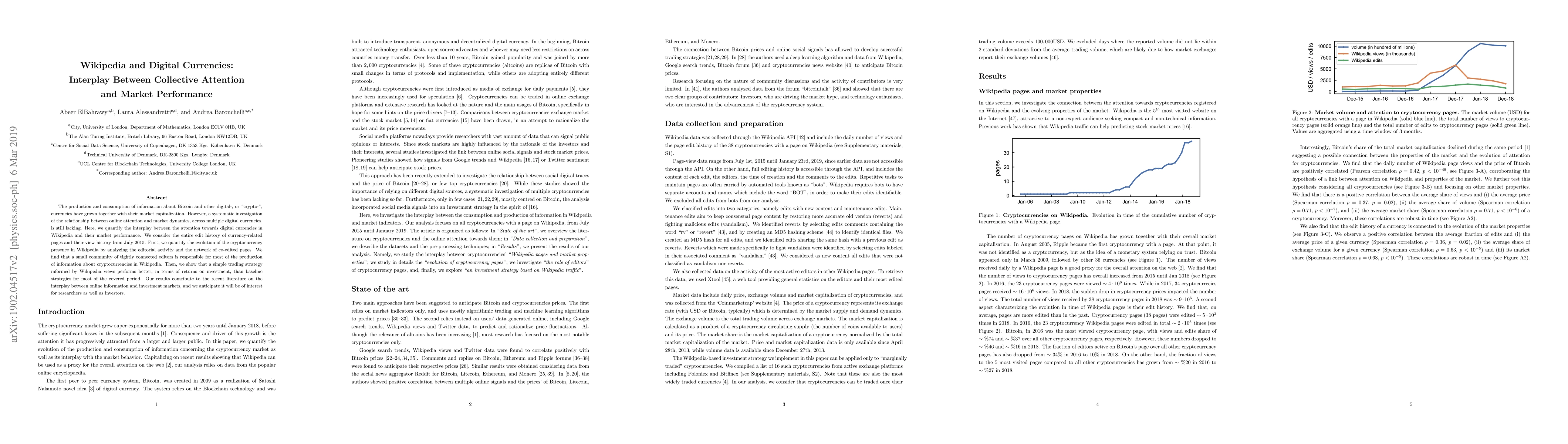 This paper investigates the relationship between Wikipedia attention and market performance of digital currencies like Bitcoin. It finds that a small, interconnected group of editors drives most cryptocurrency information on Wikipedia, and that a trading strategy based on Wikipedia views can outperform traditional strategies, highlighting the interplay between online information and investment markets.