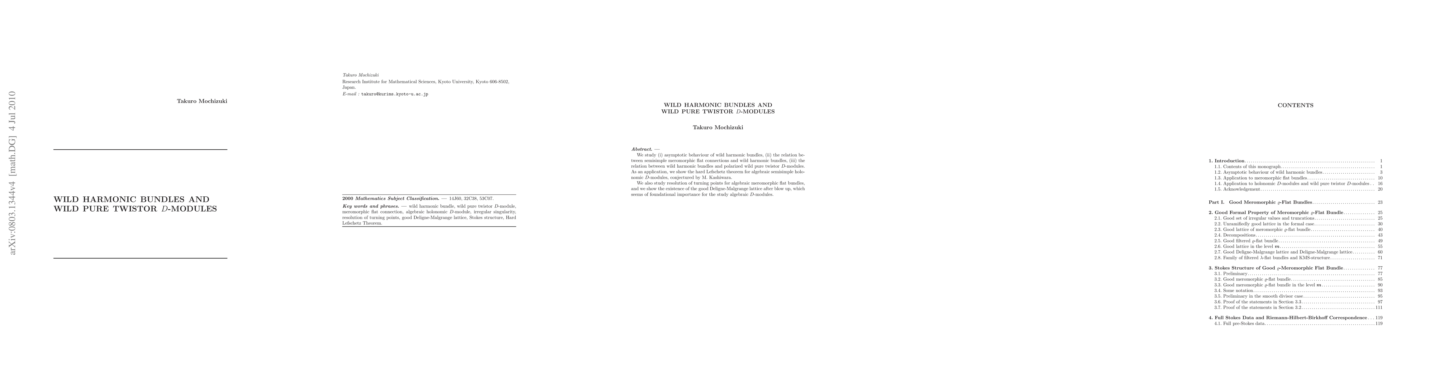 We study (i) asymptotic behaviour of wild harmonic bundles, (ii) the relation between semisimple meromorphic flat connections and wild harmonic bundles, (iii) the relation between wild harmonic bundles and polarized wild pure twistor $D$-modules. As an application, we show the hard Lefschetz theorem for algebraic semisimple holonomic $D$-modules, conjectured by M. Kashiwara.