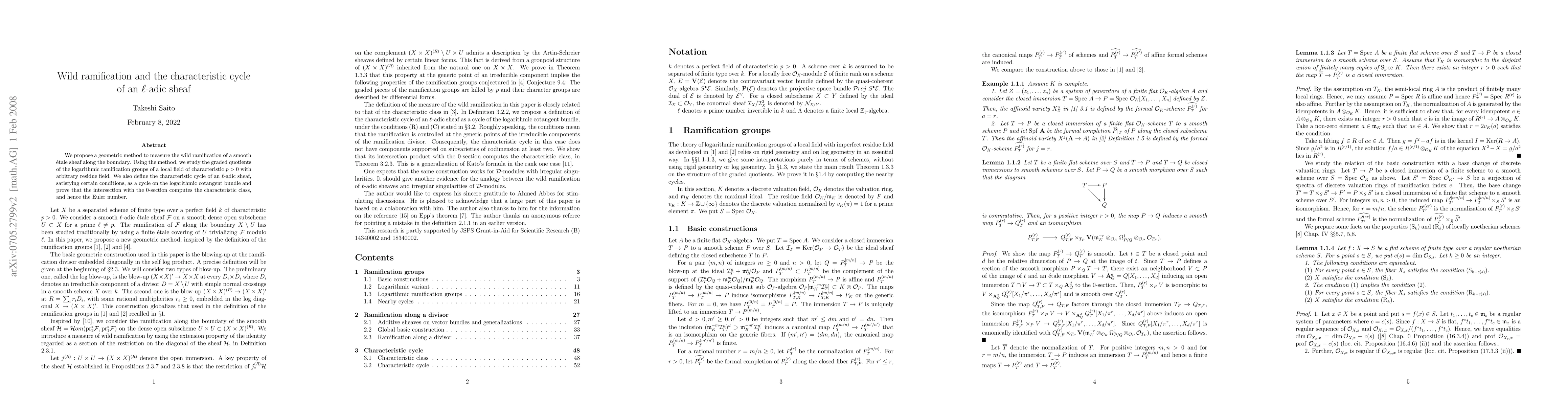 We propose a geometric method to measure the wild ramification of a smooth etale sheaf along the boundary. Using the method, we study the graded quotients of the logarithmic ramification groups of a local field of positive characteristic with arbitrary residue field. We also define the characteristic cycle of an l-adic sheaf, satisfying certain conditions, as a cycle on the logarithmic cotangent bundle and prove that the intersection with the 0-section computes the characteristic class, and hence the Euler number. Definition 2.1.1 is corrected in v2.