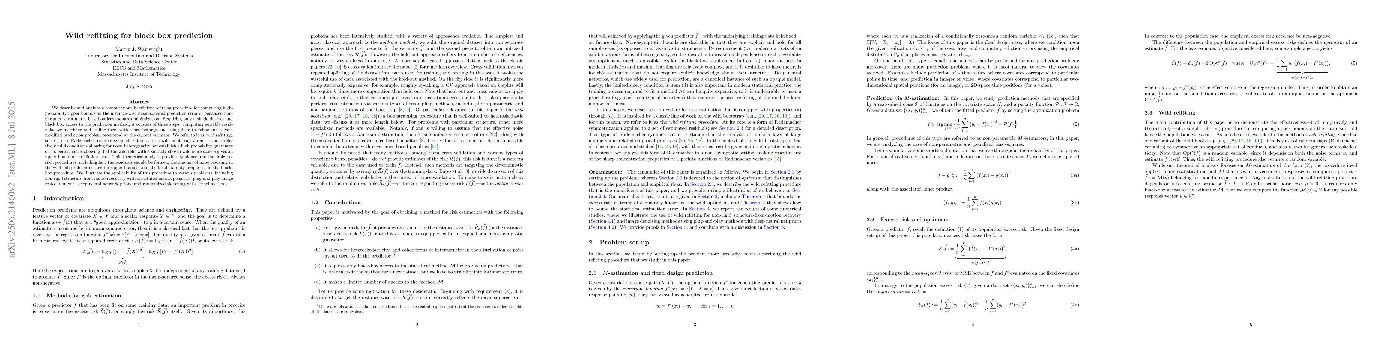 It introduces the concept of wild refitting as an efficient, black box compatible procedure for high-probability error bounds, bridging bootstrap ideas with nonparametric prediction analysis.