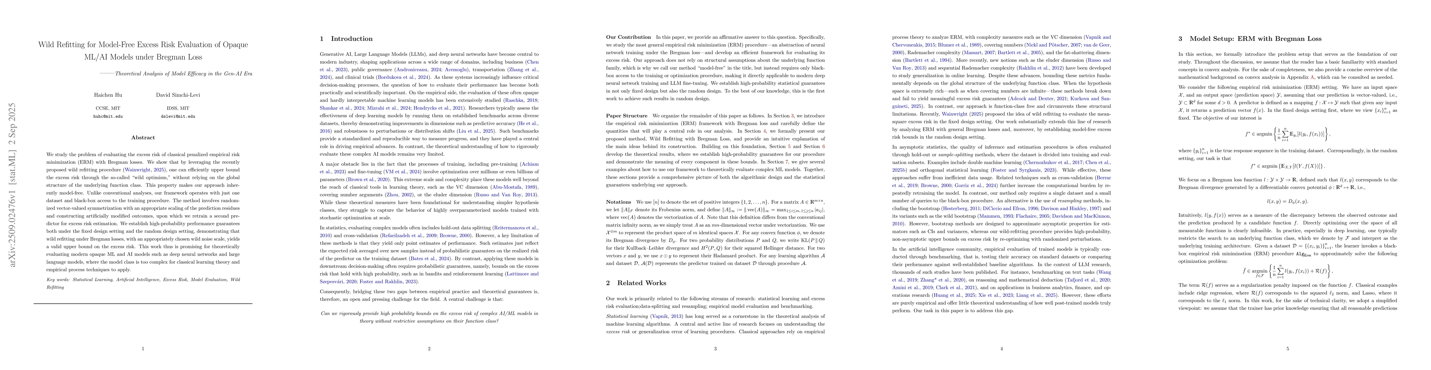 We study the problem of evaluating the excess risk of classical penalized empirical risk minimization (ERM) with Bregman losses. We show that by leveraging the recently proposed wild refitting procedure (Wainwright, 2025), one can efficiently upper bound the excess risk through the so-called "wild optimism," without relying on the global structure of the underlying function class. This property makes our approach inherently model-free. Unlike conventional analyses, our framework operates with just one dataset and black-box access to the training procedure. The method involves randomized vector-valued symmetrization with an appropriate scaling of the prediction residues and constructing artificially modified outcomes, upon which we retrain a second predictor for excess risk estimation. We establish high-probability performance guarantees both under the fixed design setting and the random design setting, demonstrating that wild refitting under Bregman losses, with an appropriately chosen wild noise scale, yields a valid upper bound on the excess risk. This work thus is promising for theoretically evaluating modern opaque ML and AI models such as deep neural networks and large language models, where the model class is too complex for classical learning theory and empirical process techniques to apply.