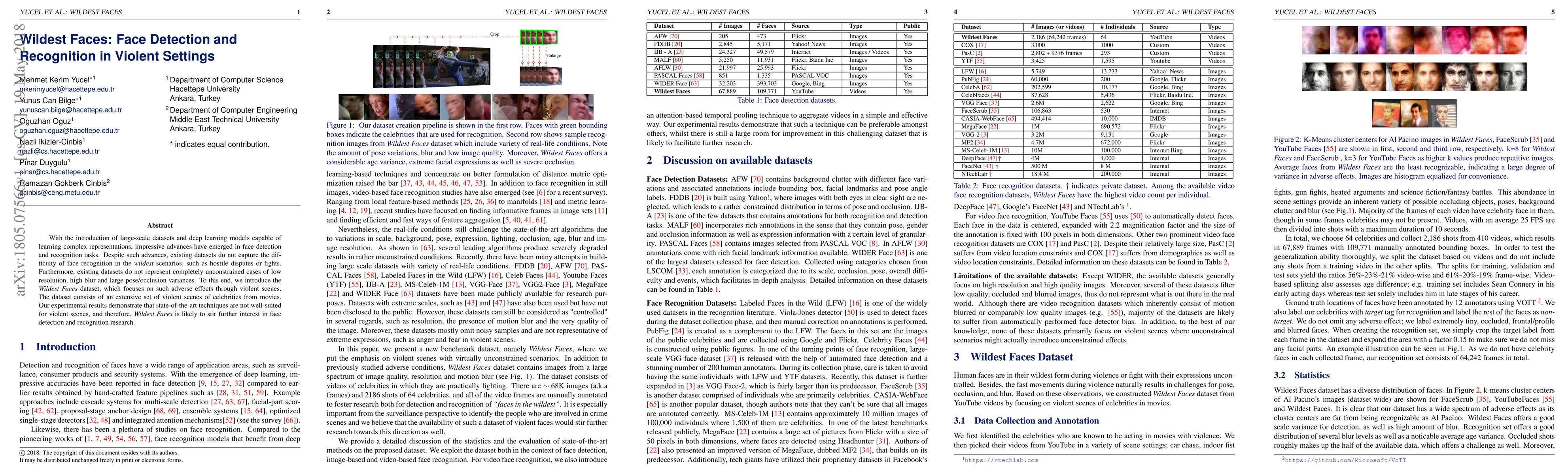 Researchers created a new dataset called Wildest Faces to improve face detection and recognition in violent settings, which current models struggle with. The dataset showcases challenging scenarios like low resolution, high blur, and large pose/occlusion variances.