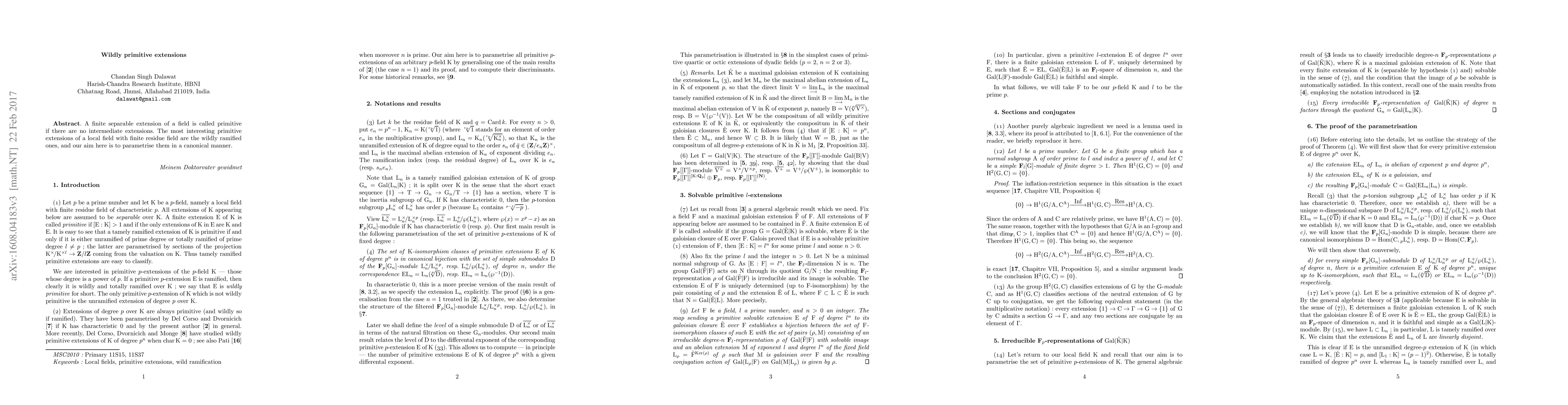 The paper aims to canonically parameterize primitive extensions of local fields with finite residue fields, specifically focusing on the wildly ramified ones. This work seeks to provide a systematic approach to understanding these unique and intriguing extensions.