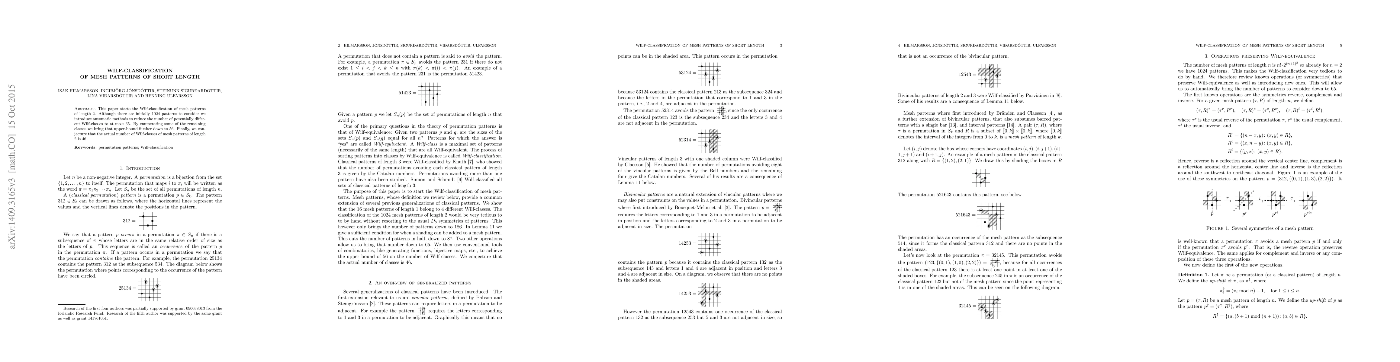 This paper initiates the classification of mesh patterns of length 2 into Wilf-classes, reducing the initial 1024 potential patterns to a conjectured 46 distinct classes using automatic enumeration methods.